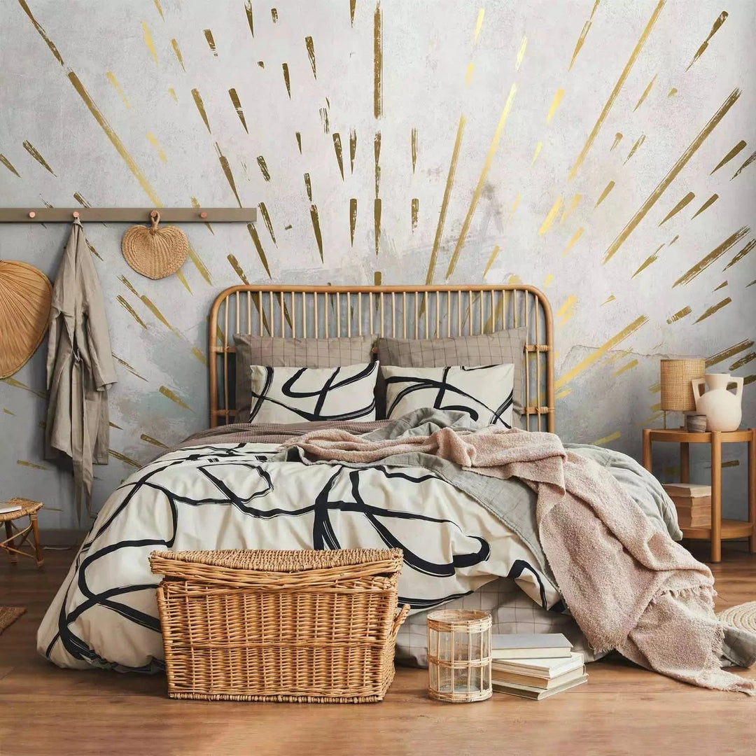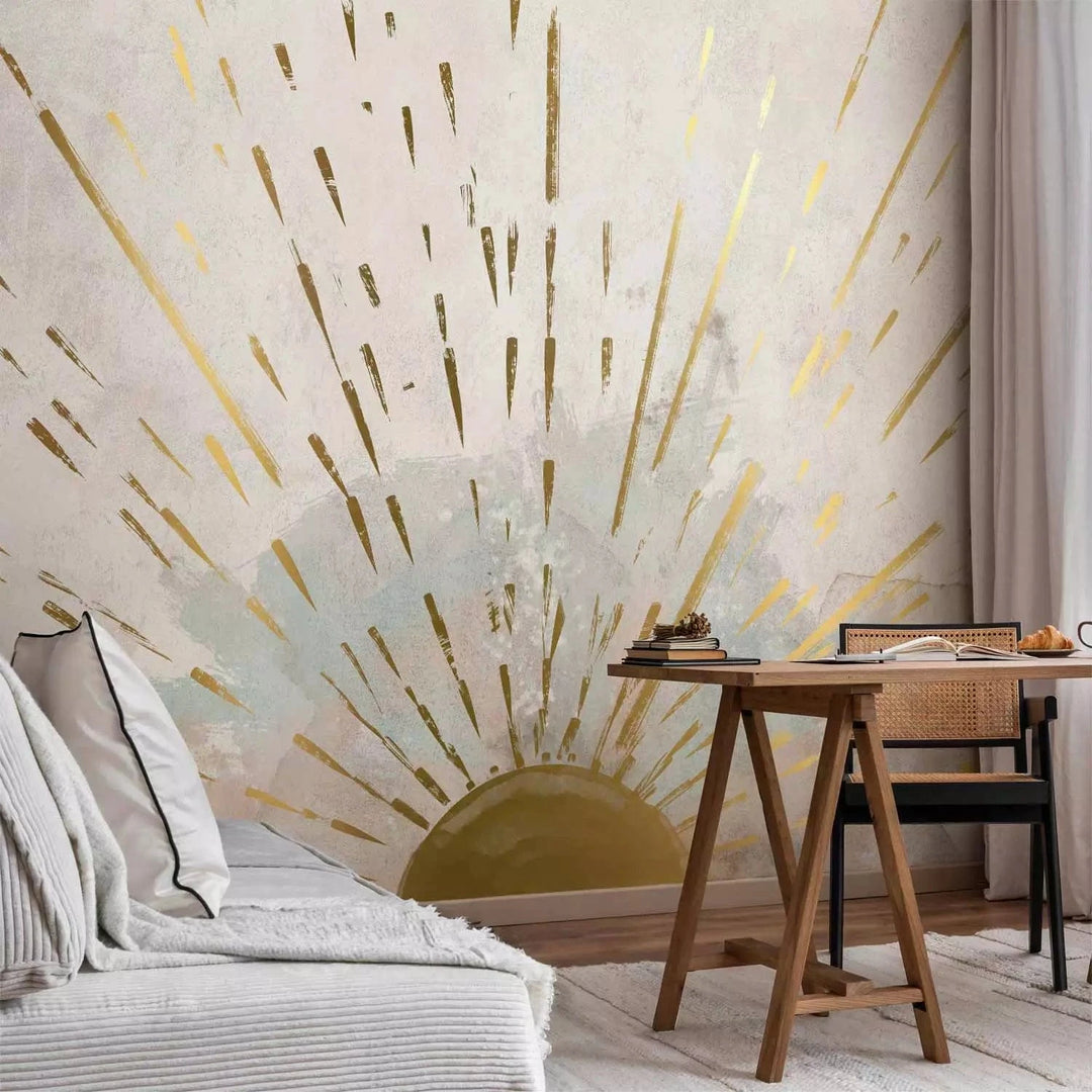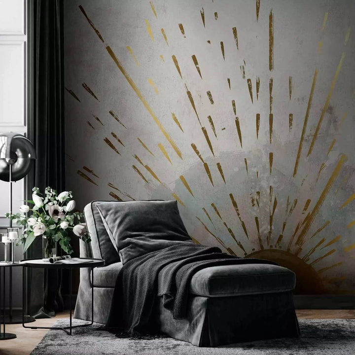 Valokuvatapetti - Auringon kultaiset kasvot, abstraktio harmaalla taustalla, 137501