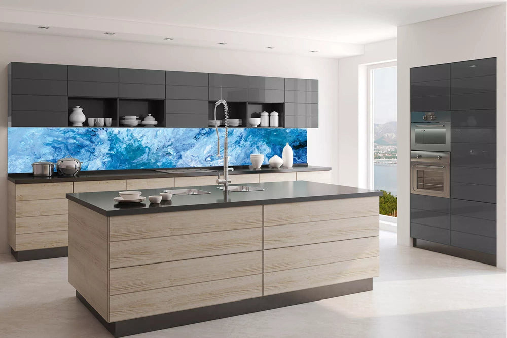 Laminoidut valokuvatapetit keittiöön - Zila abstrakcija (350x60 cm)