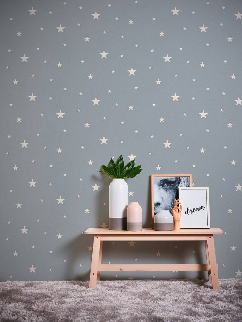 Pimeässä pimeässä tapetit lastentarhaan luminesoivalla tähti-sinisellä