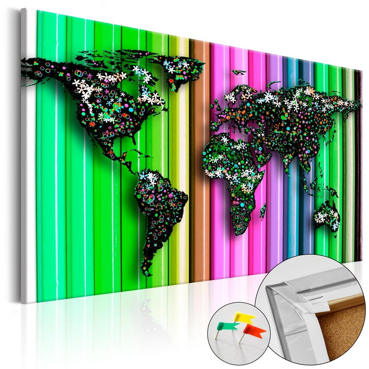 Koristeellinen korkki, jossa tulostus toimii erinomaisena sisustuksena kotiisi tai toimistossasi. Voit sijoittaa tärkeitä muistiinpanoja koristeelliselle alustalle tai merkitse vieraillut paikkoja. Pienen painojen ansiosta koristeellinen taulutus voidaan kiinnittää mihin tahansa seinään talossa tai toimistossa.