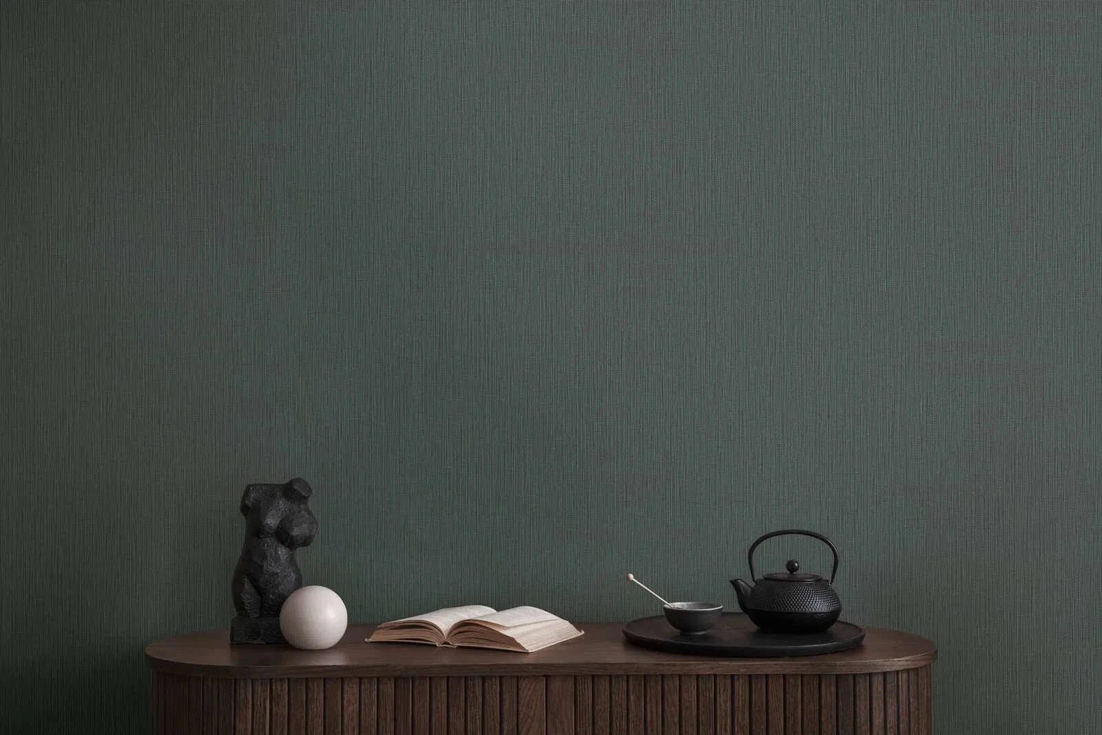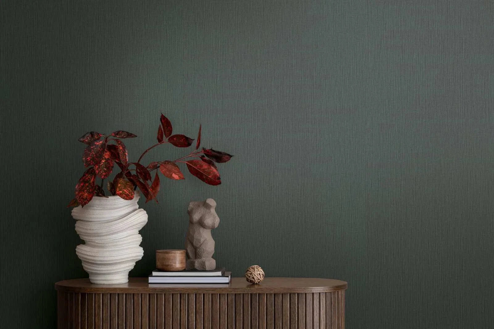 Tamsūs vienspalviai neaustiniai tapetai su faktūra suteikia sienoms gilumo ir elegantiškumo.
