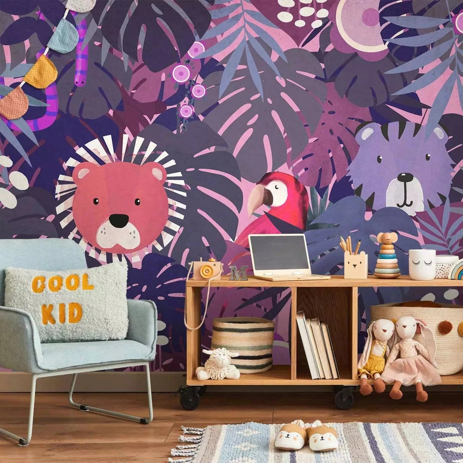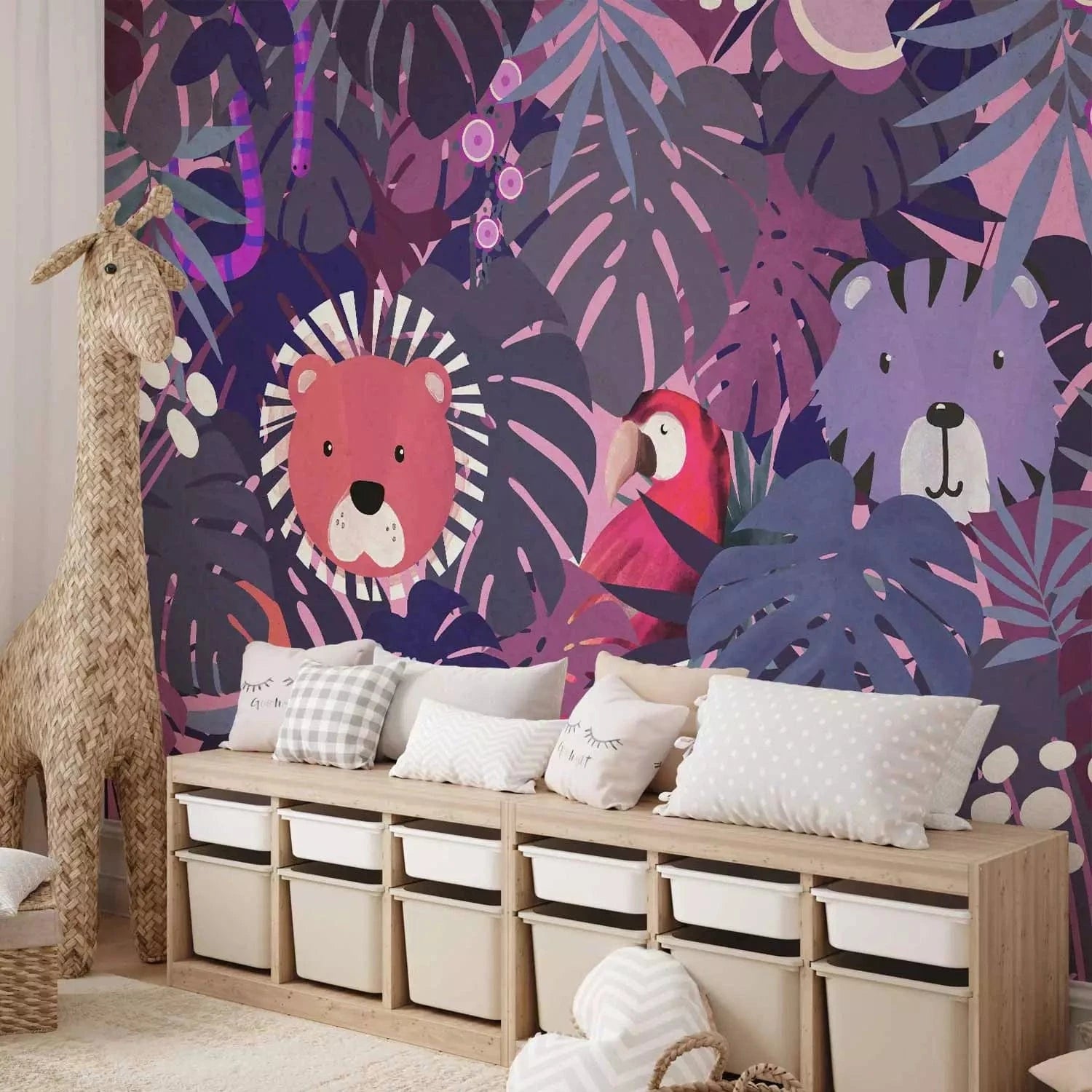 Fototapetai darželiams - Gyvūnai tarp lapų (violetinė), 143575