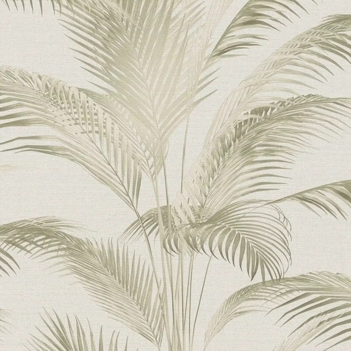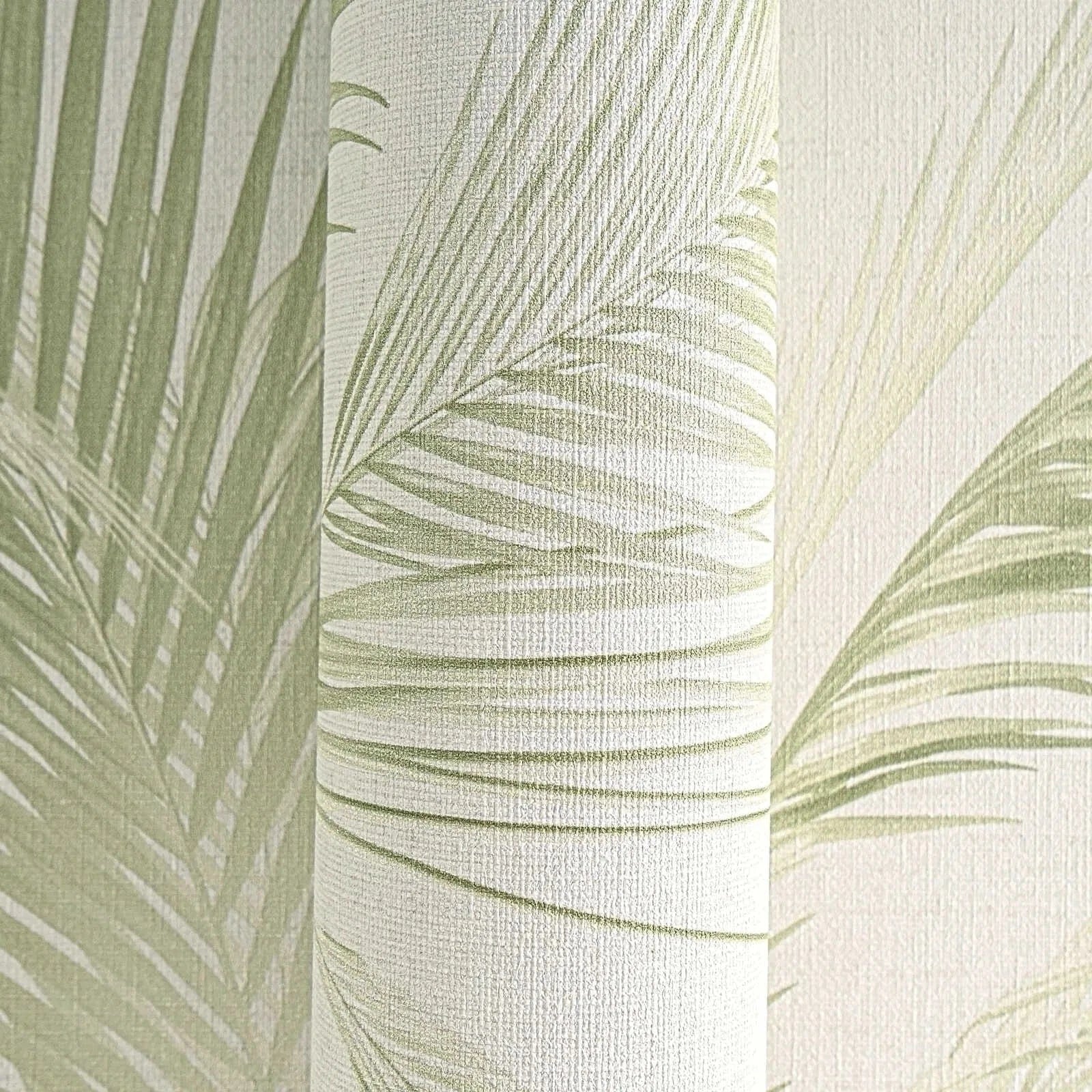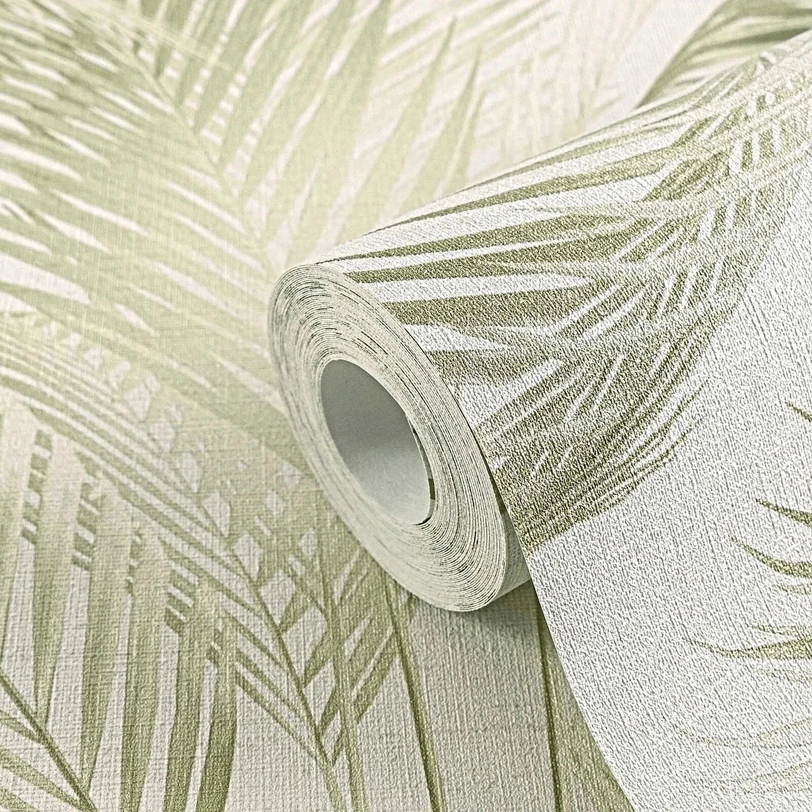 Flizelino tapetai su palmių lapais, žalios/kreminės spalvos - 1414672