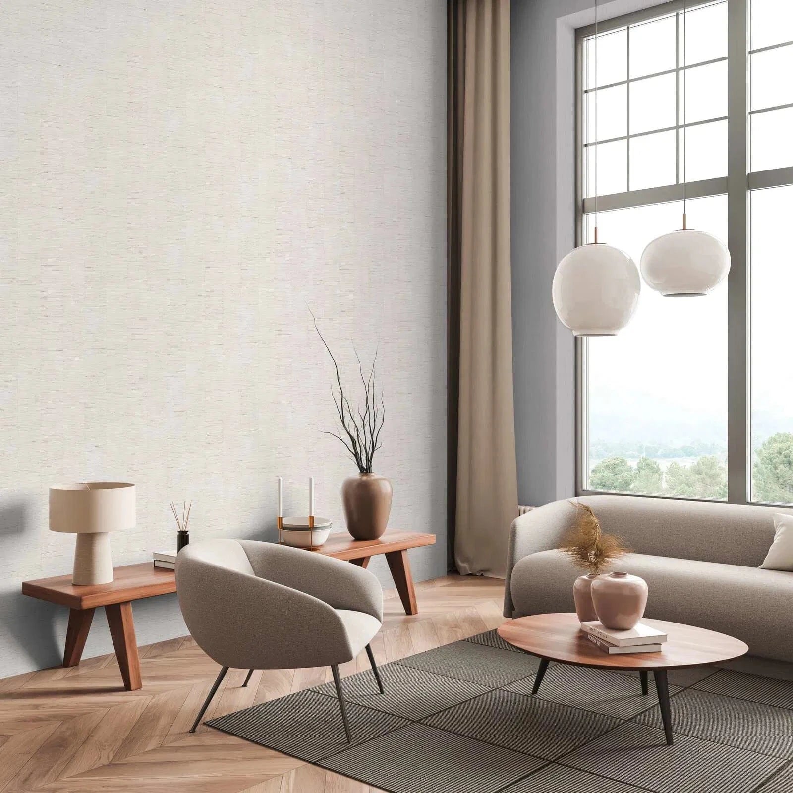 Danielio Hechterio kreminės spalvos modernūs tapetai su abstrakčiu bambuko raštu suteikia interjerui lengvumo ir natūralios elegancijos.