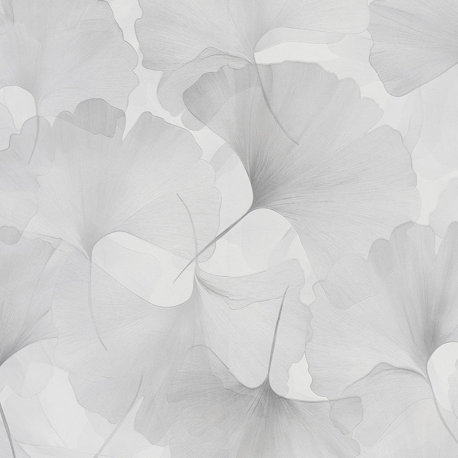 Tapetai su dideliais stilizuotais pilkų atspalvių lapais - 3741626