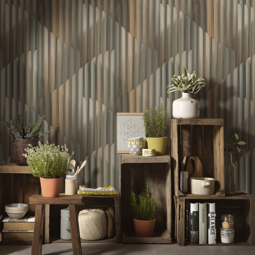 Vienspalviai tapetai su metalo efektu, šiltų atspalvių, 3766402