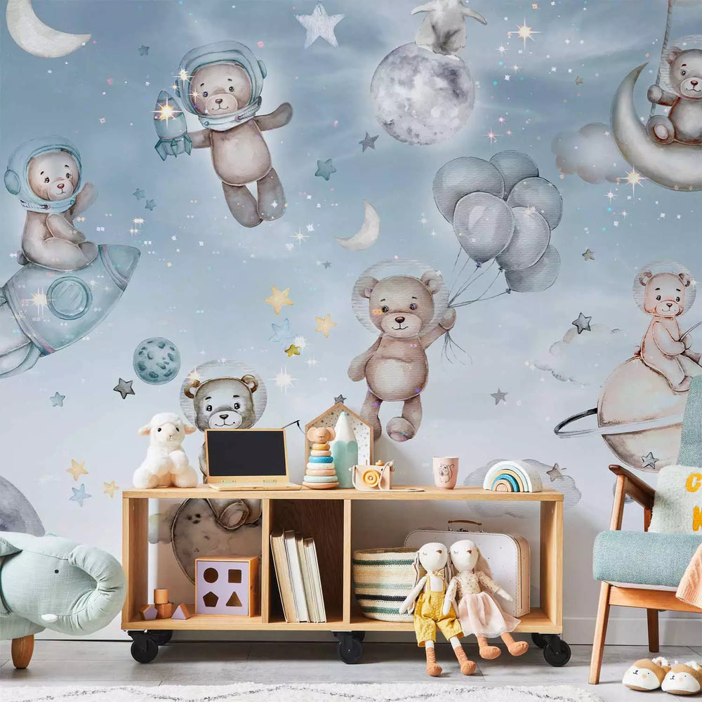 Nuo švelnių pastelinių atspalvių iki gilios kosminės mėlynos ir žvilgančio metalo - šie tapetai geriausiai dera su neutraliais arba vienspalviais baldais, kad fantazijos scena išsiskirtų. Pridėkite šiltą apšvietimą arba metalinius akcentus, kad efektas būtų dar spalvingesnis.