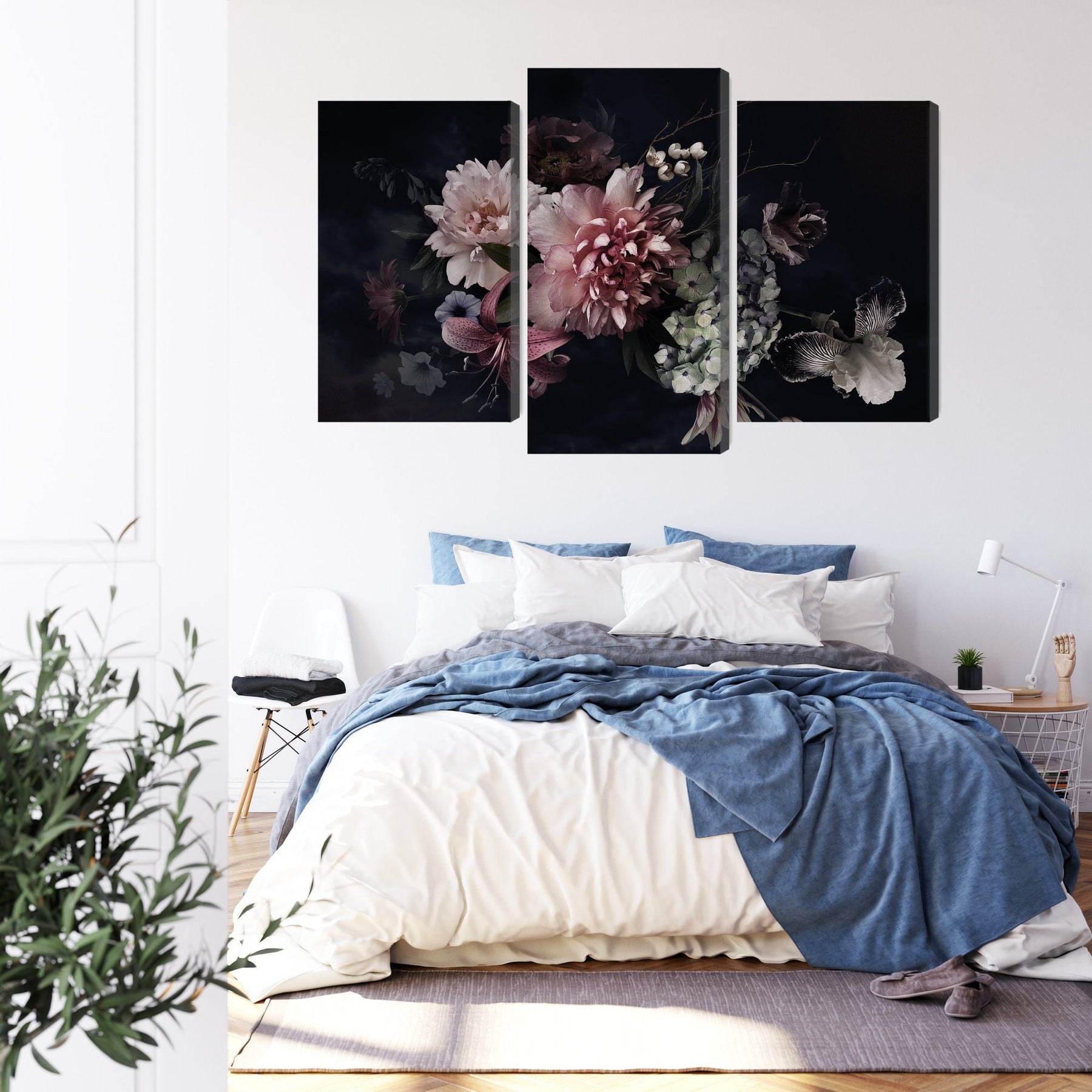 Paveikslai ant drobės - Retro gėlės tamsiame fone, N-3985