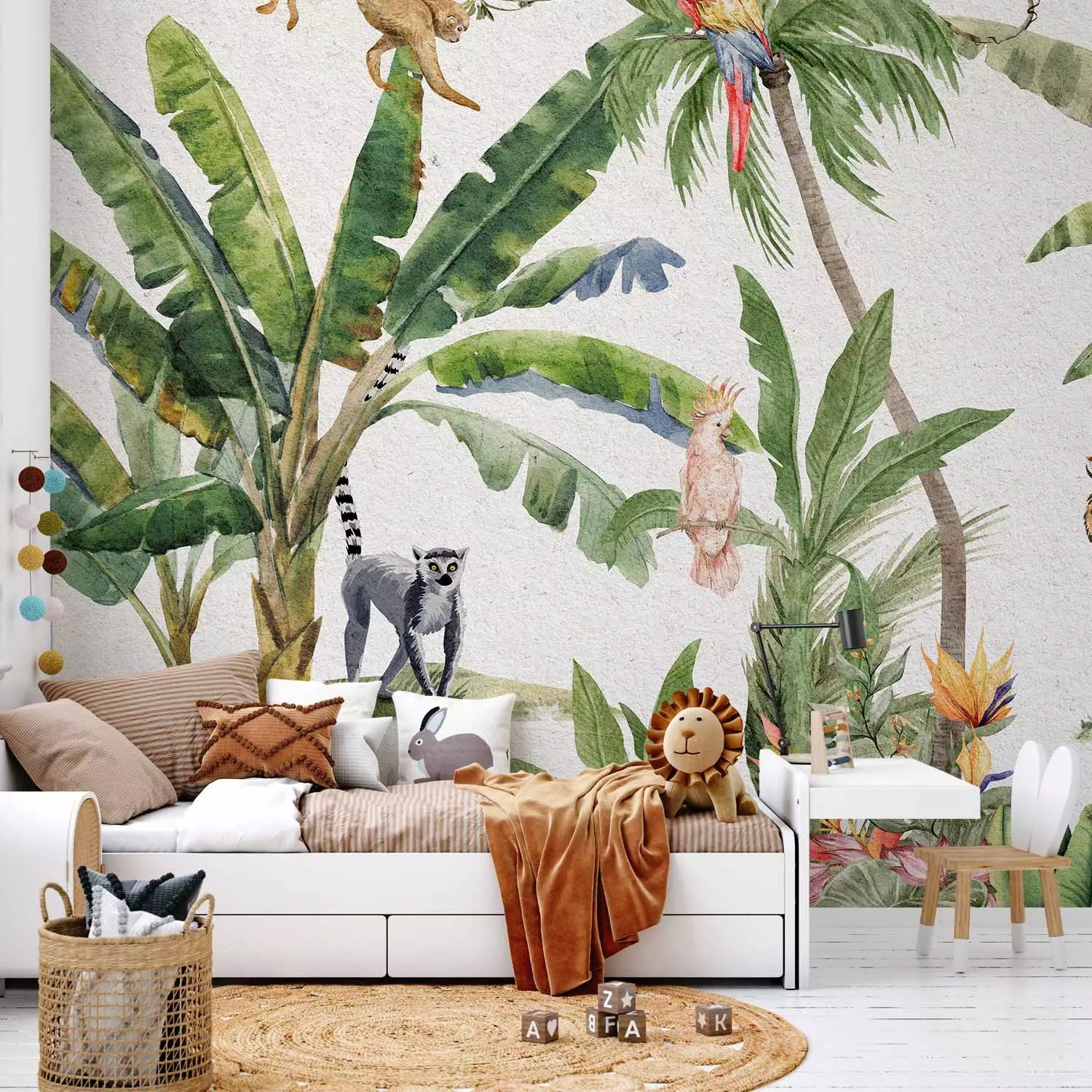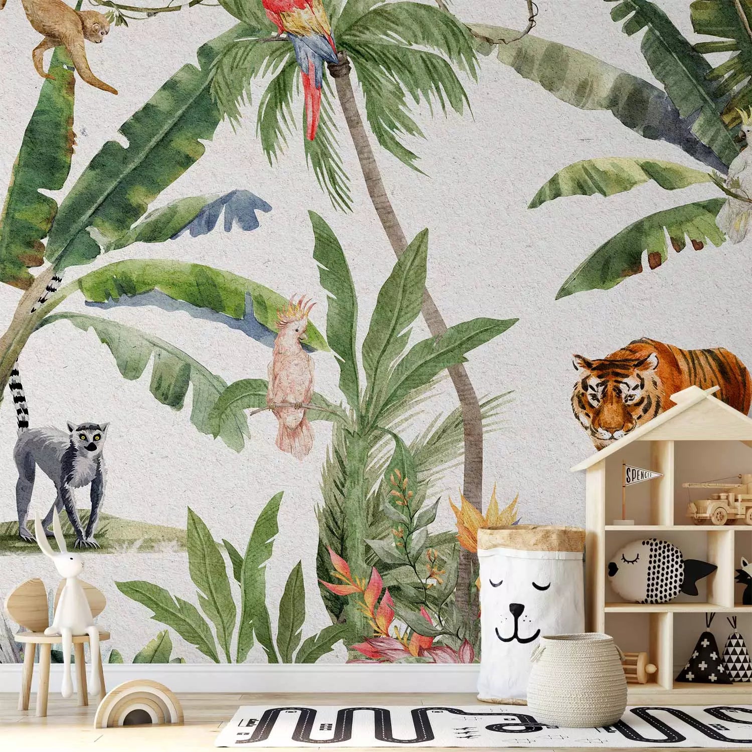 Fototapetai - Prislopintų spalvų džiunglės su gyvūnais, 149221