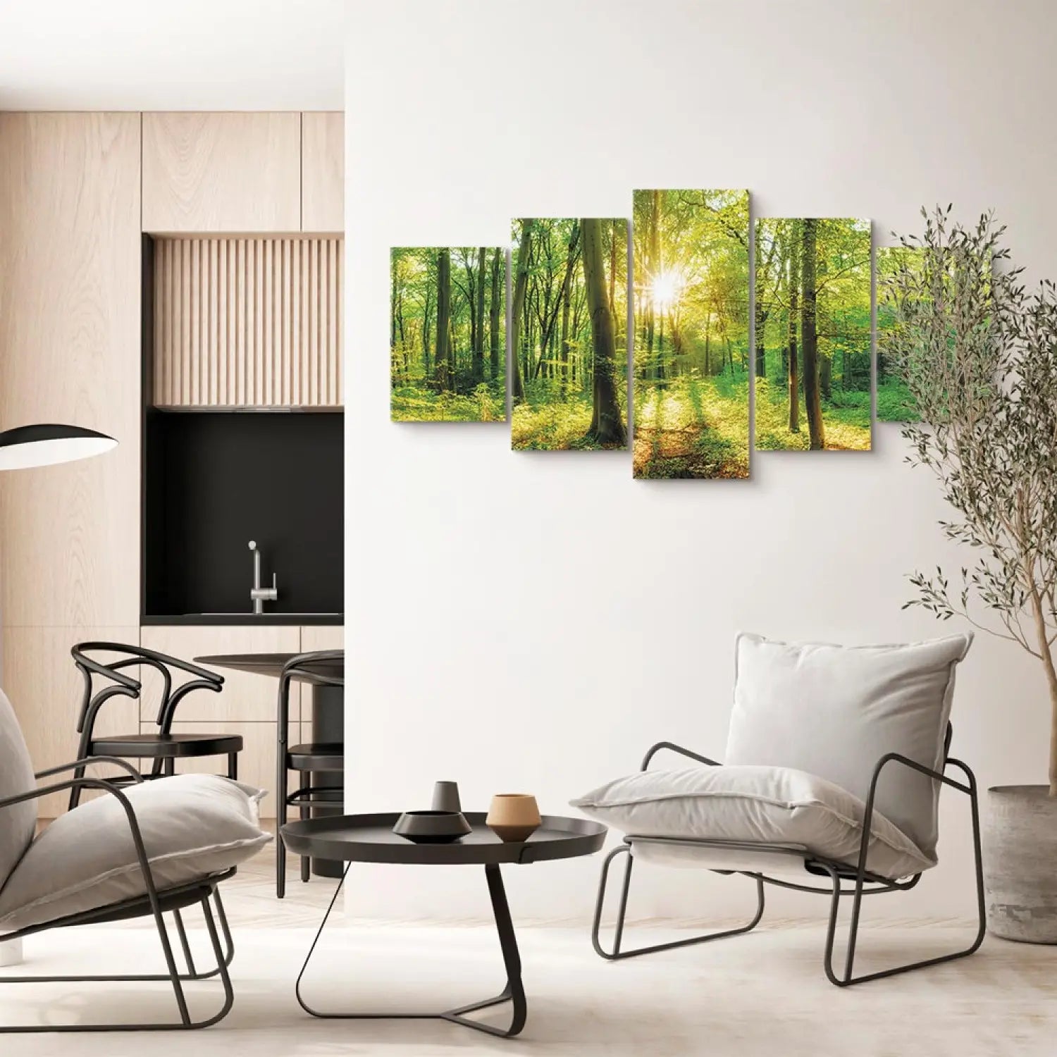 Paveikslai ant drobės su saulėtu mišku - Miško pasaka, (x5), 94220