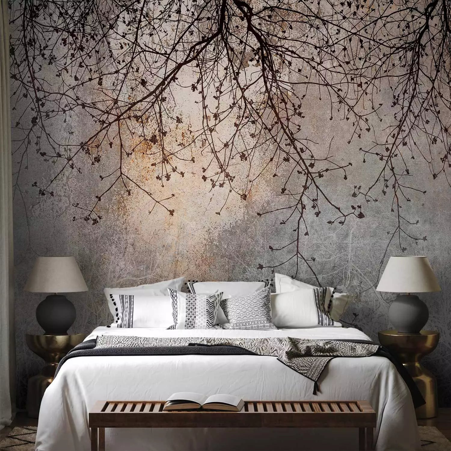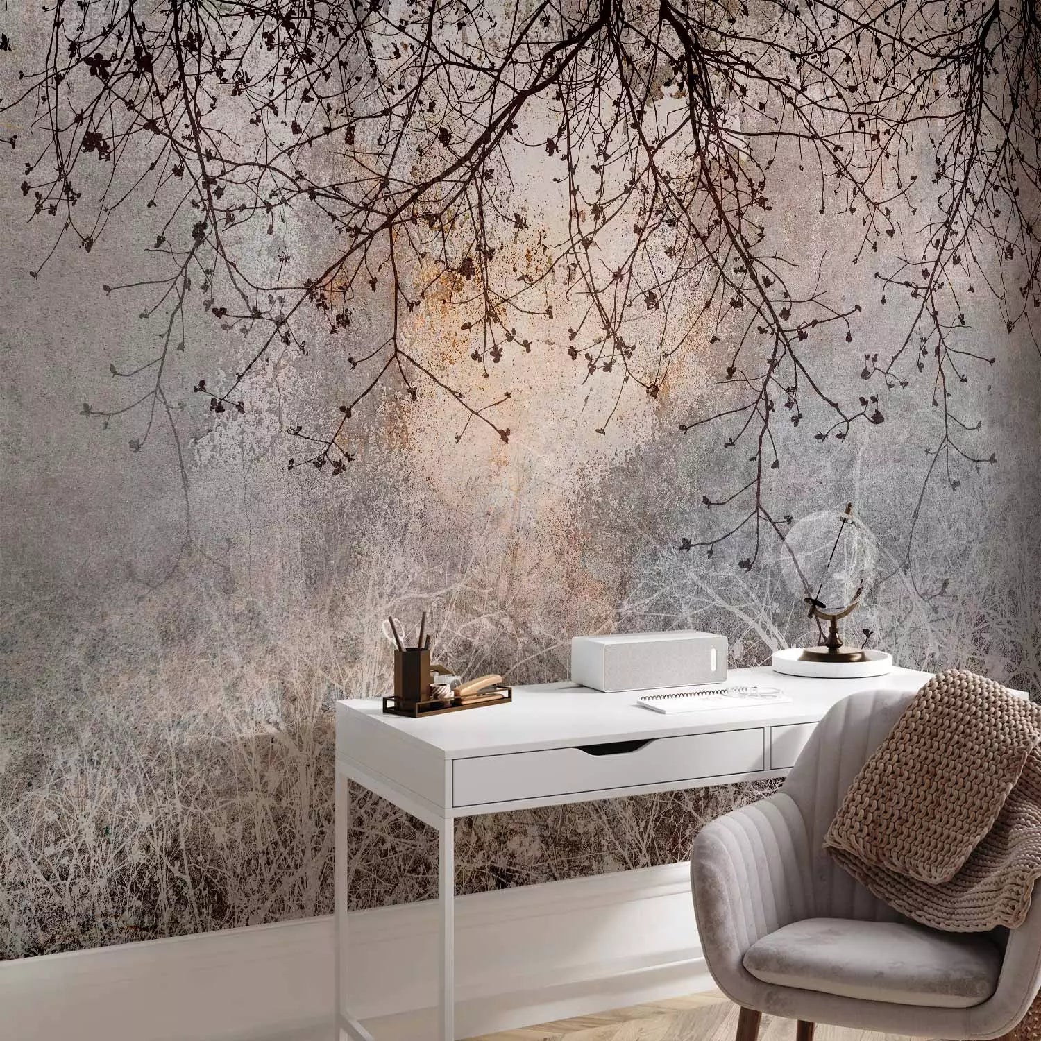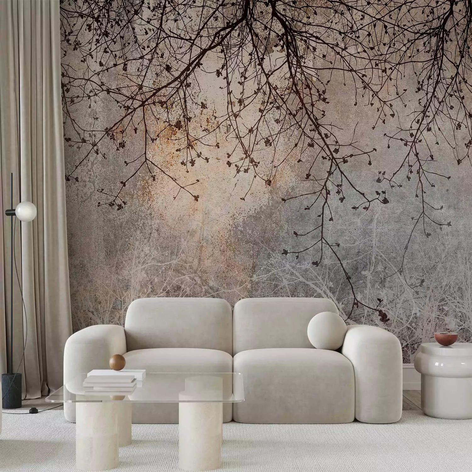 Fototapetai – Tamsūs medžių šakos ant pilko fono, 142597