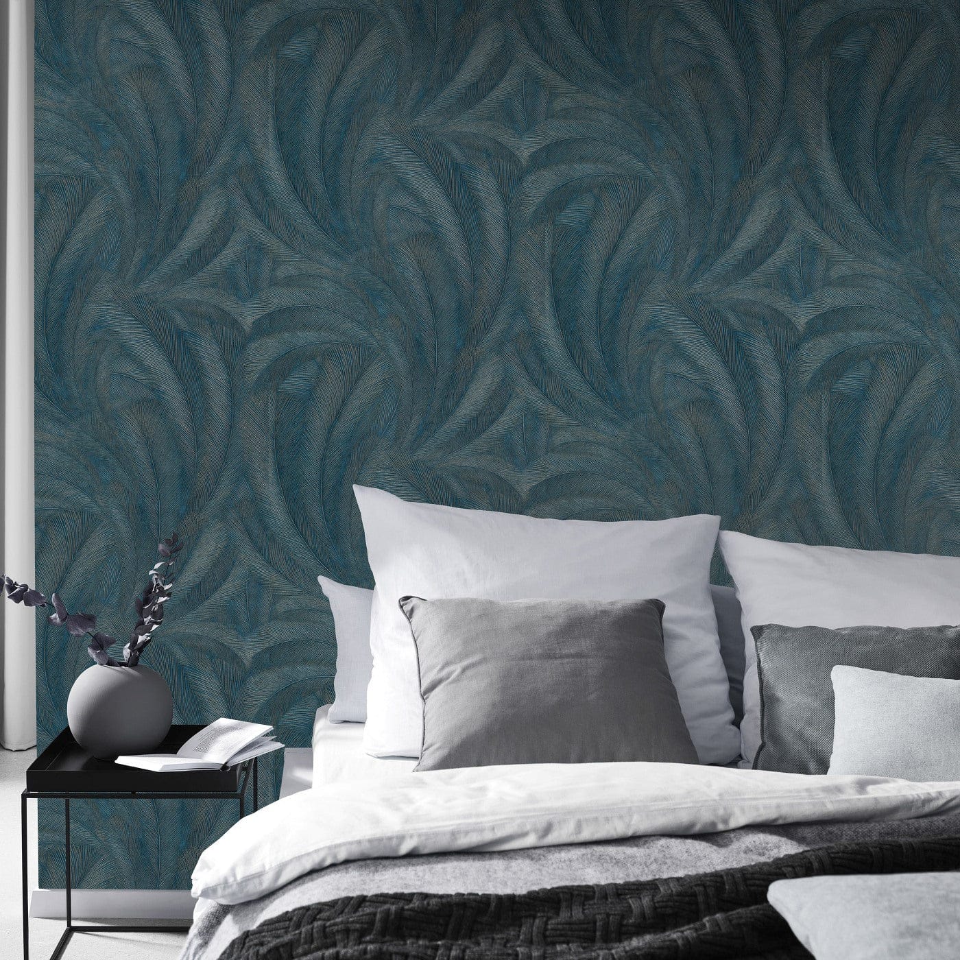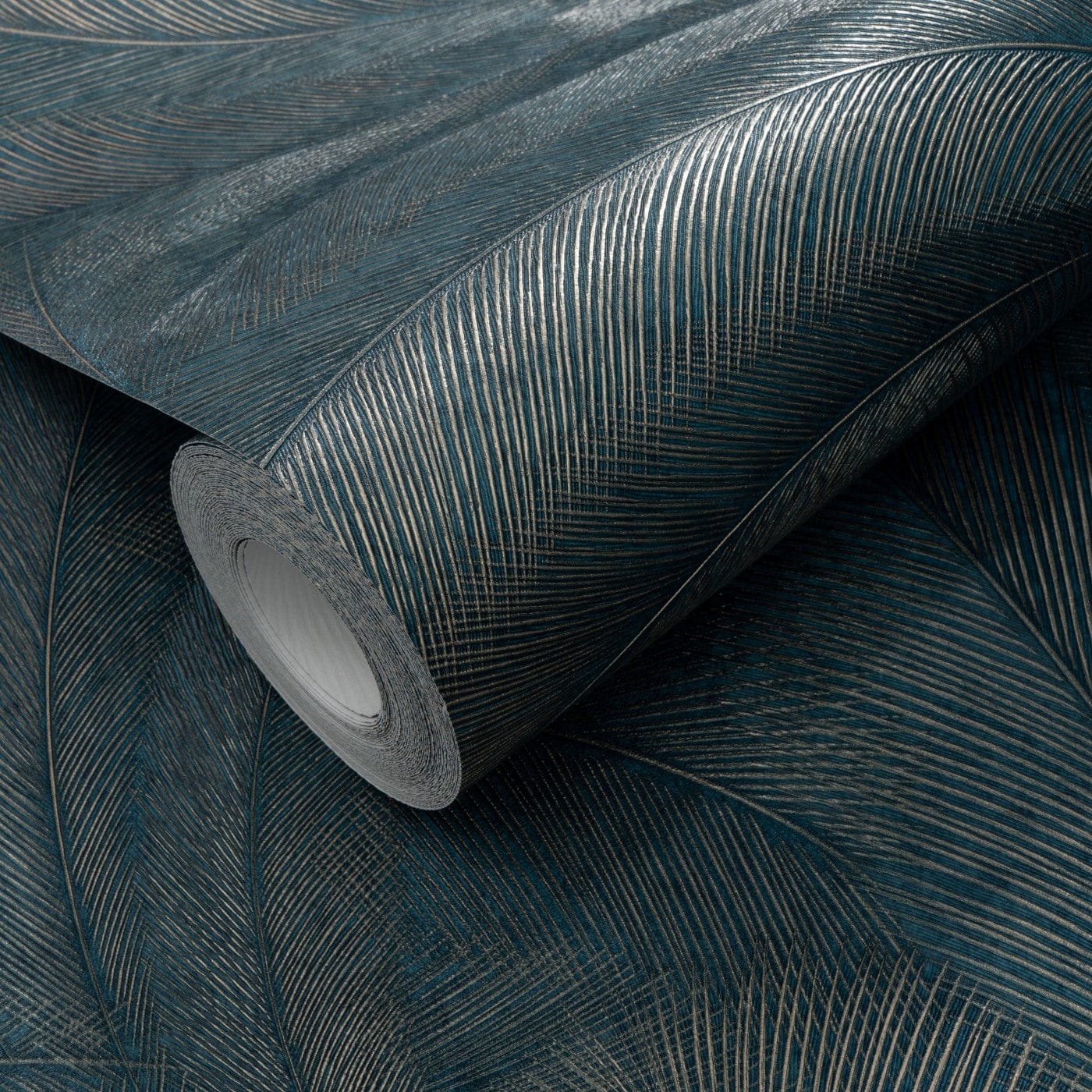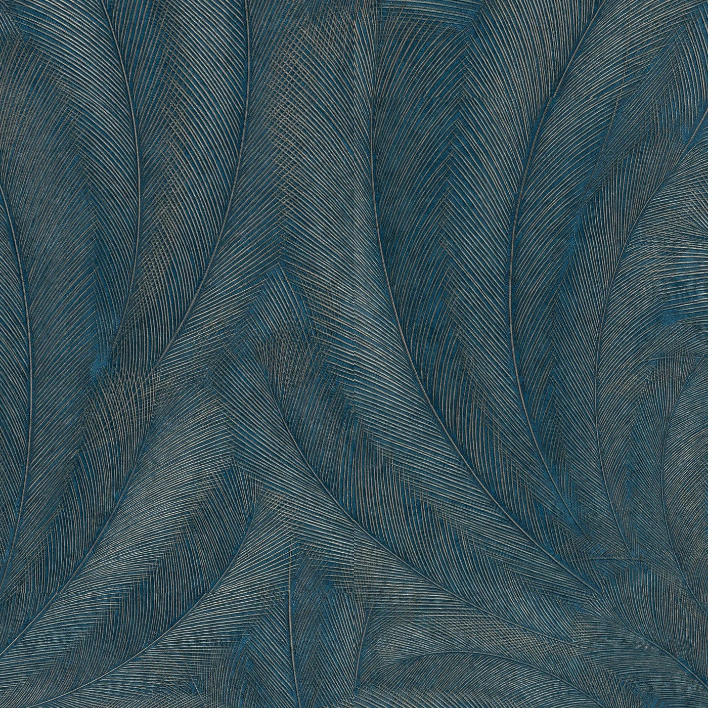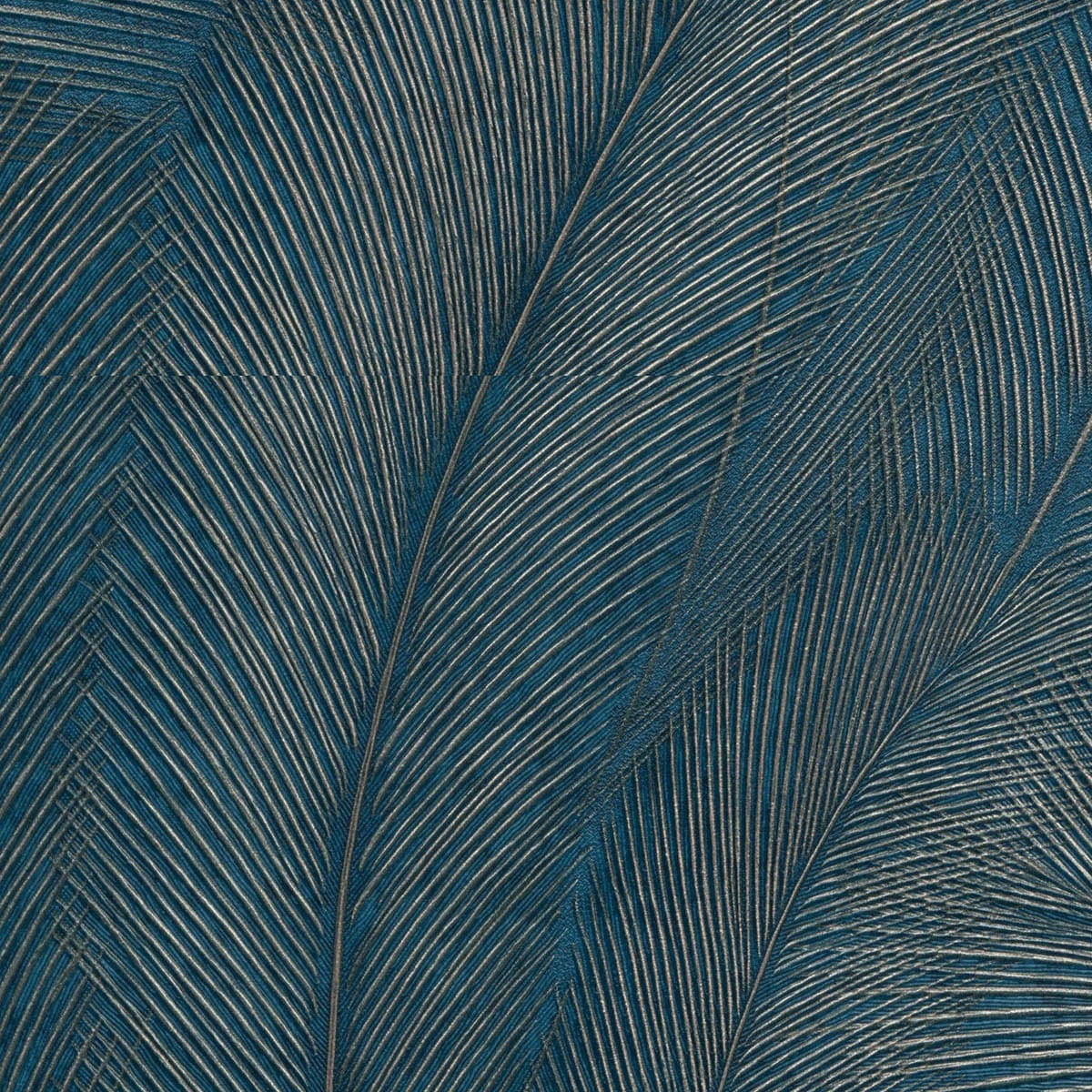 Tapetai su elegantiškais ir šiek tiek blizgančiais lapais, tamsiai mėlyni/turkio spalvos/aukso spalvos - 3776103