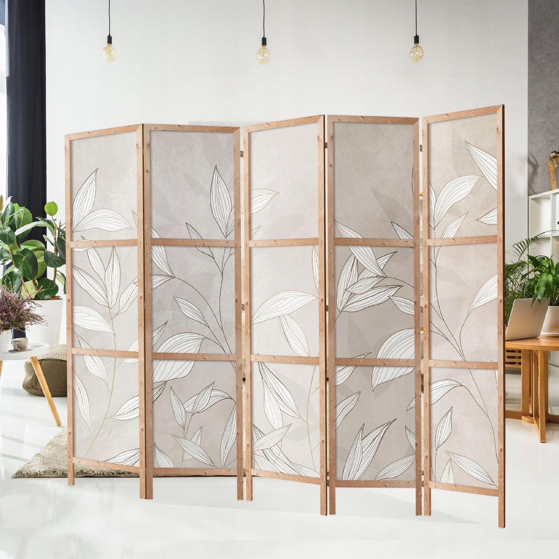 Dekoratīvs vienpusējs japāņu aizslietnis 225x172, Grafiskas, elegantas lapu līnijas uz silta fona