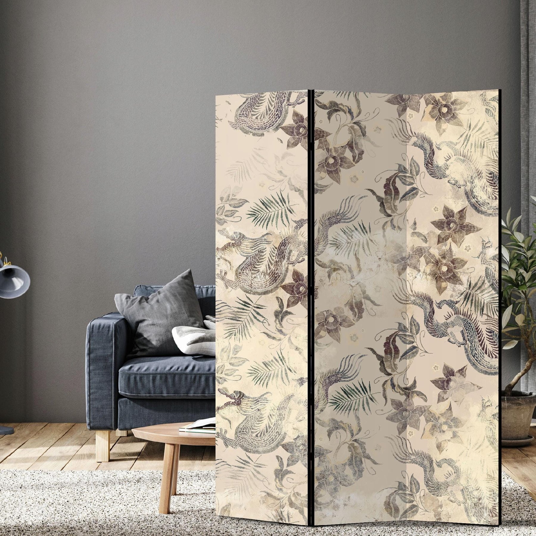 Dydžiai: 135 x 172 cm (3 dalių širma) arba 225 x 172 cm (5 dalių širma).