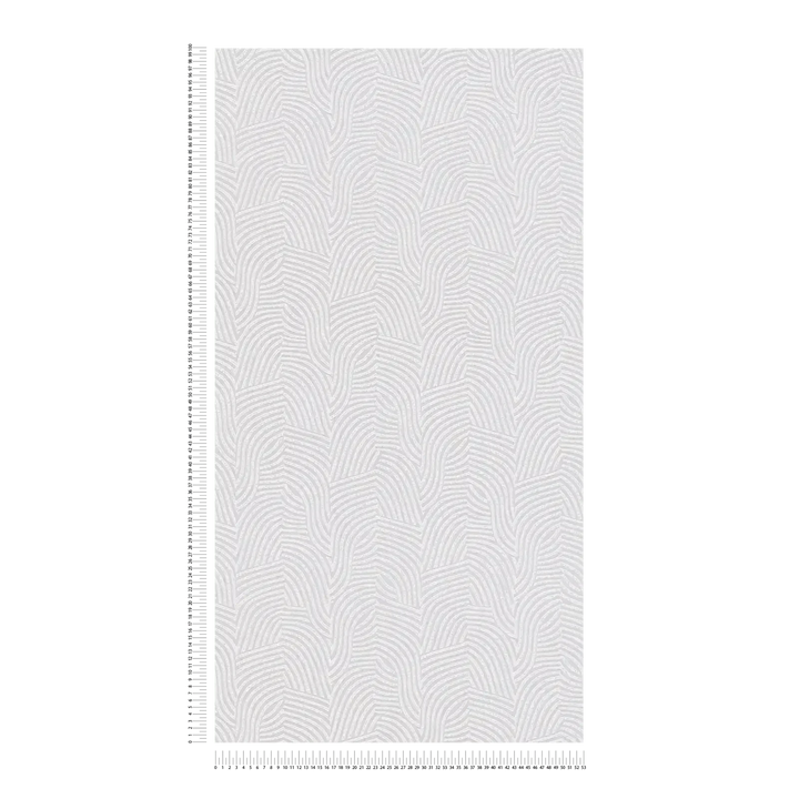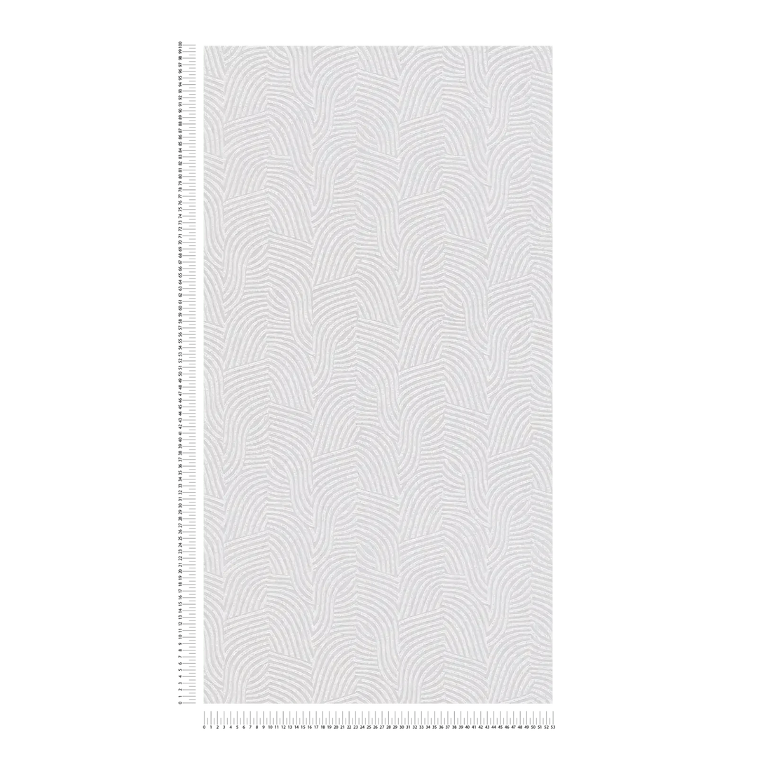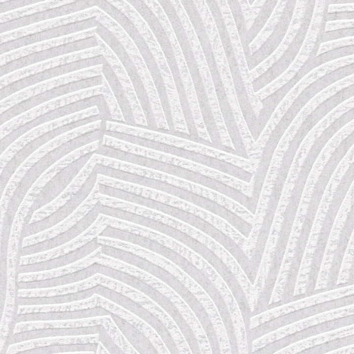 Daniel Hechter baltas un gaiši pelēkas tapetes ar viļņveida līniju rakstu rada dinamisku un elegantu sienas akcentu.