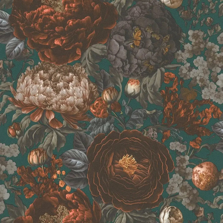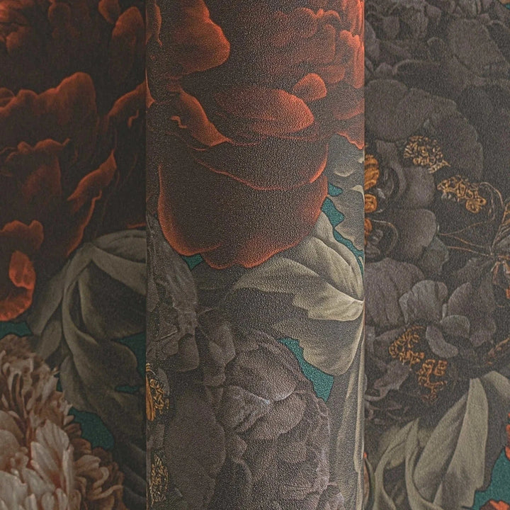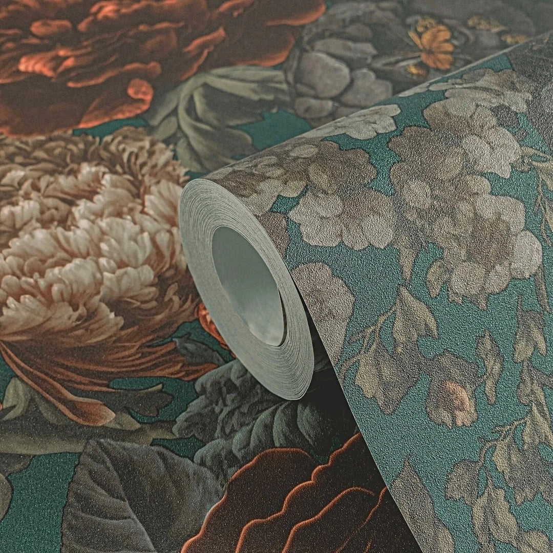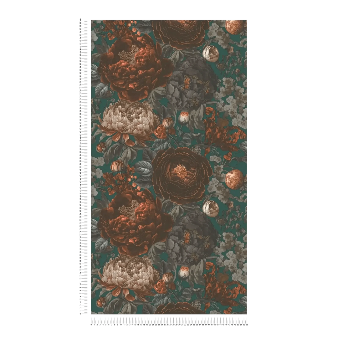 Flizelīna tapetes - vintāžas ziedu krāšņums zilā/sarkanā krāsā - 1414661