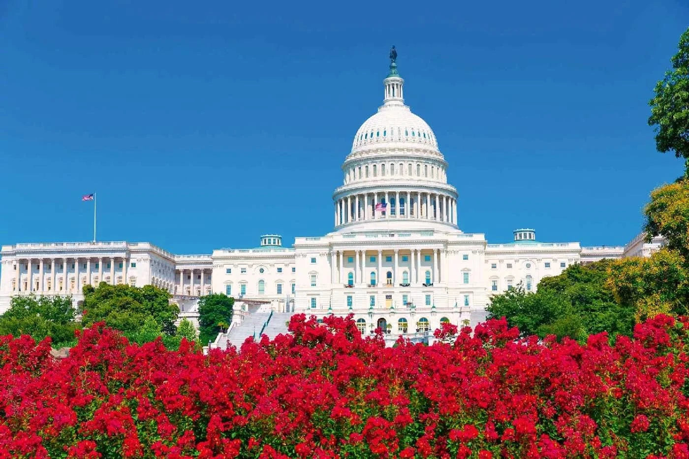 Fototapetes ar ASV tematiku - ASV Kapitolijs un ziedi, 375x250 cm