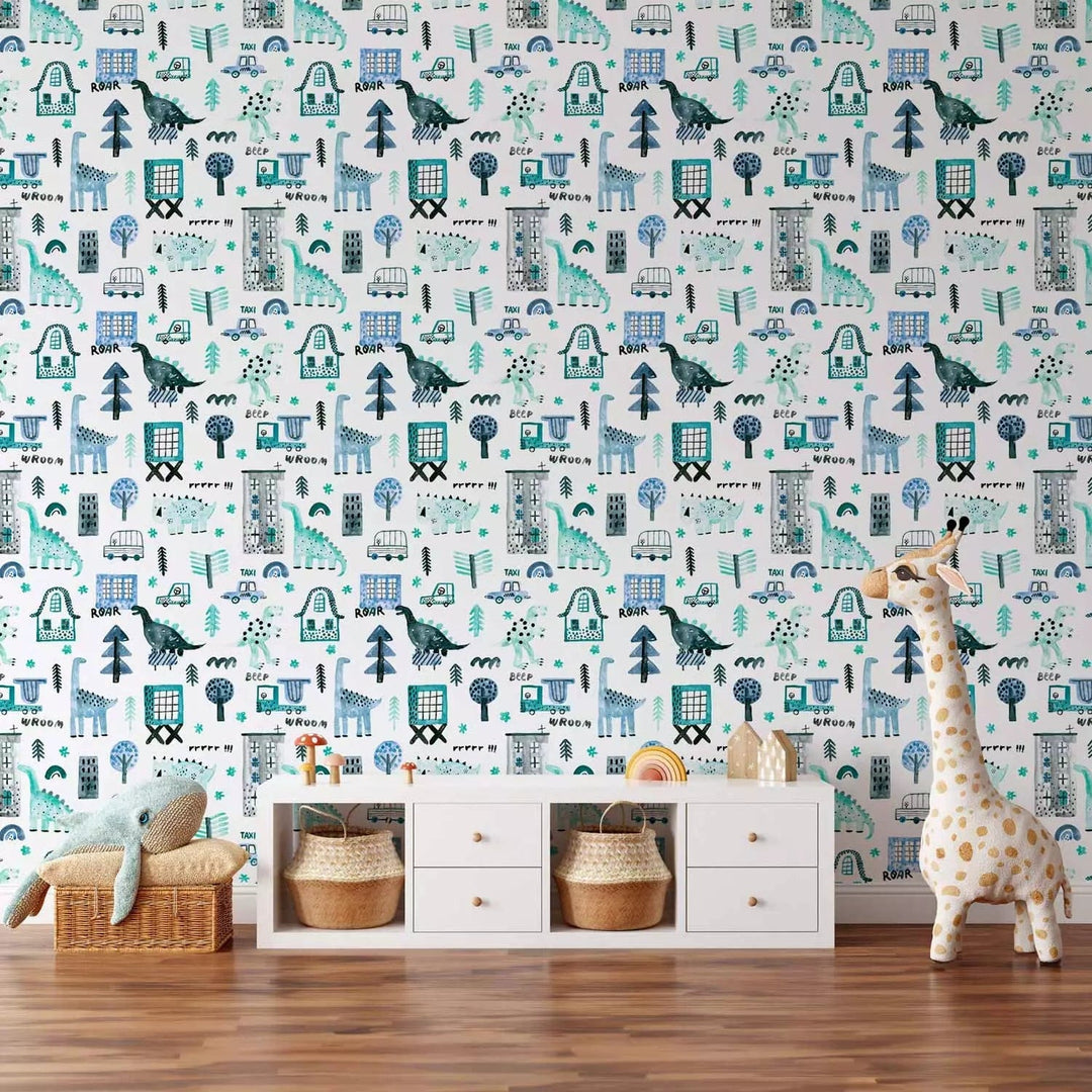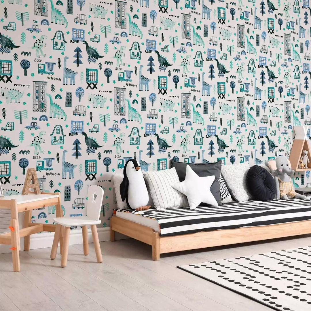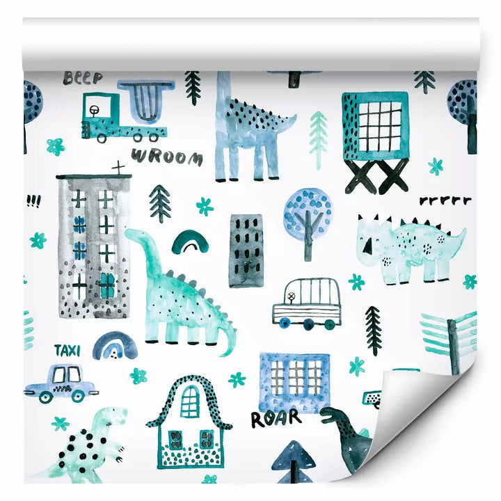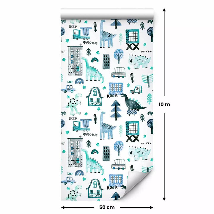Fototapetes bērnu istabai - Dinozauru pilsēta, 142743, (0,5x10m)