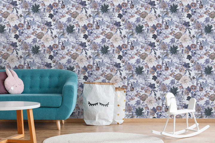 Tapetes ar ziedu rakstu zilos toņos, AS Creation 1351467