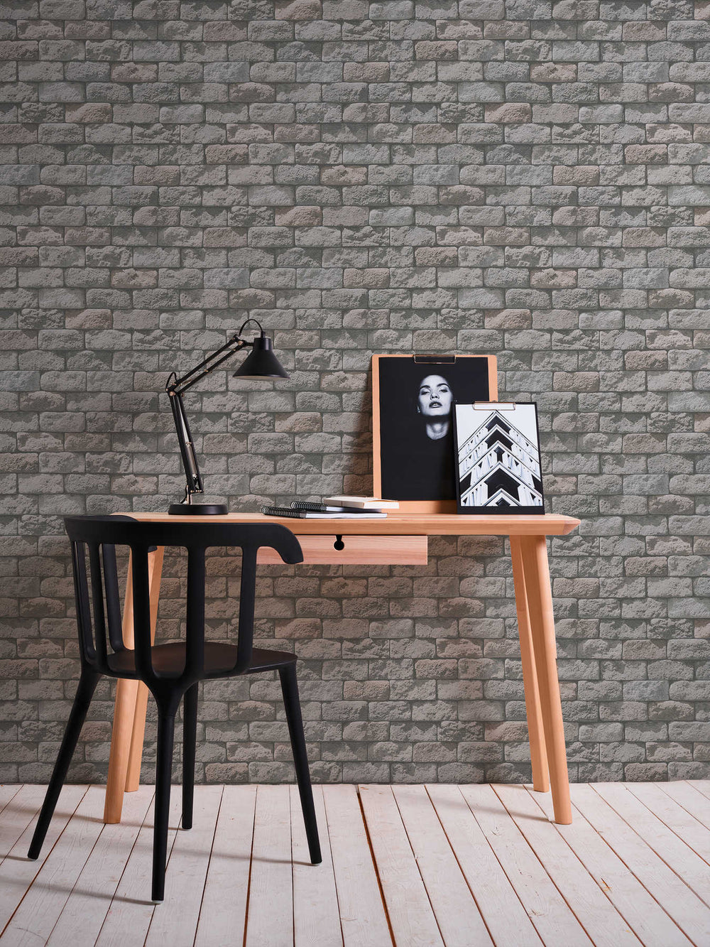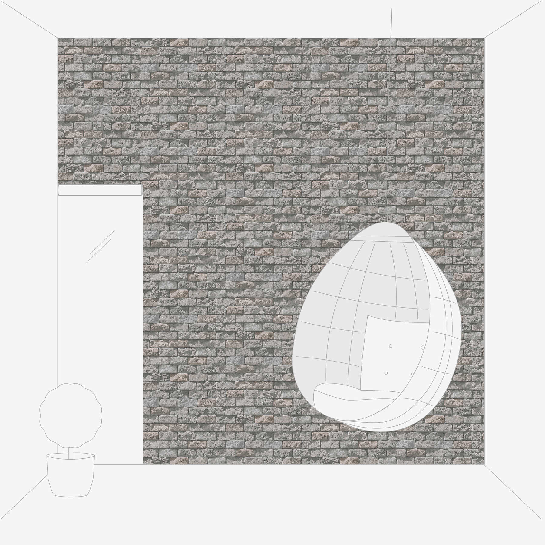 Papīra tapetes ar akmens rakstu pelēkā krāsā, 3517605
