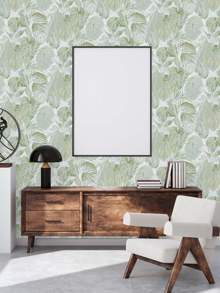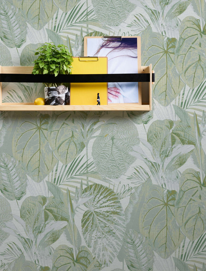 Tapetes ar džungļu rakstu, matētas: zaļa, balta, 1400522