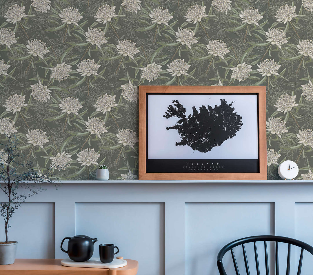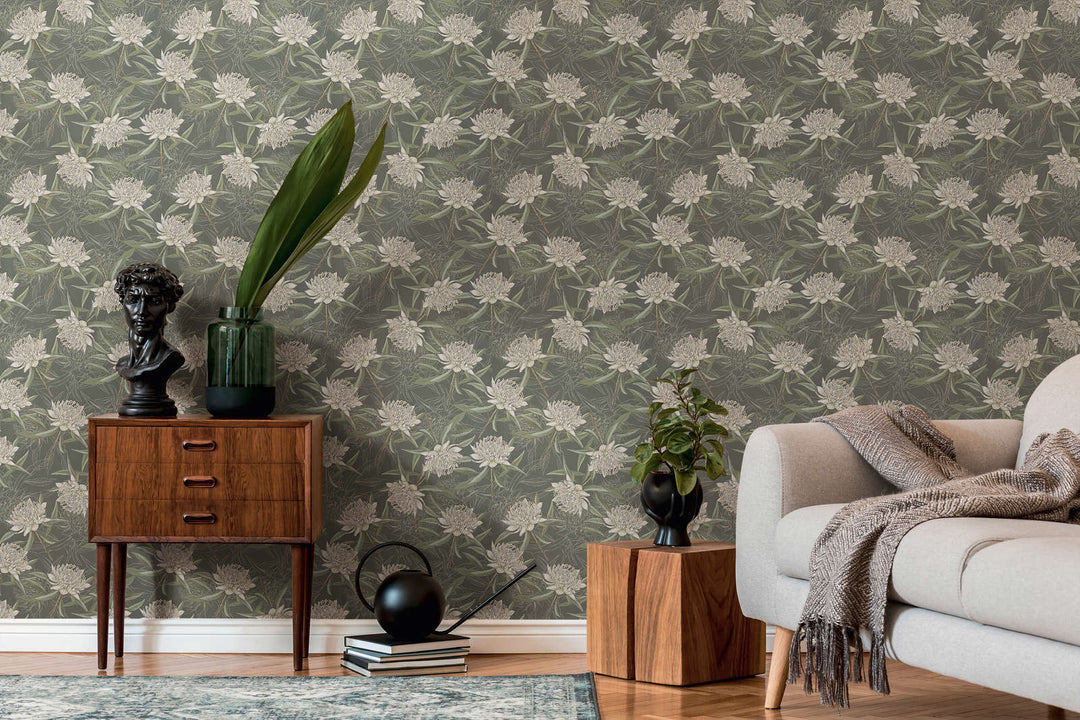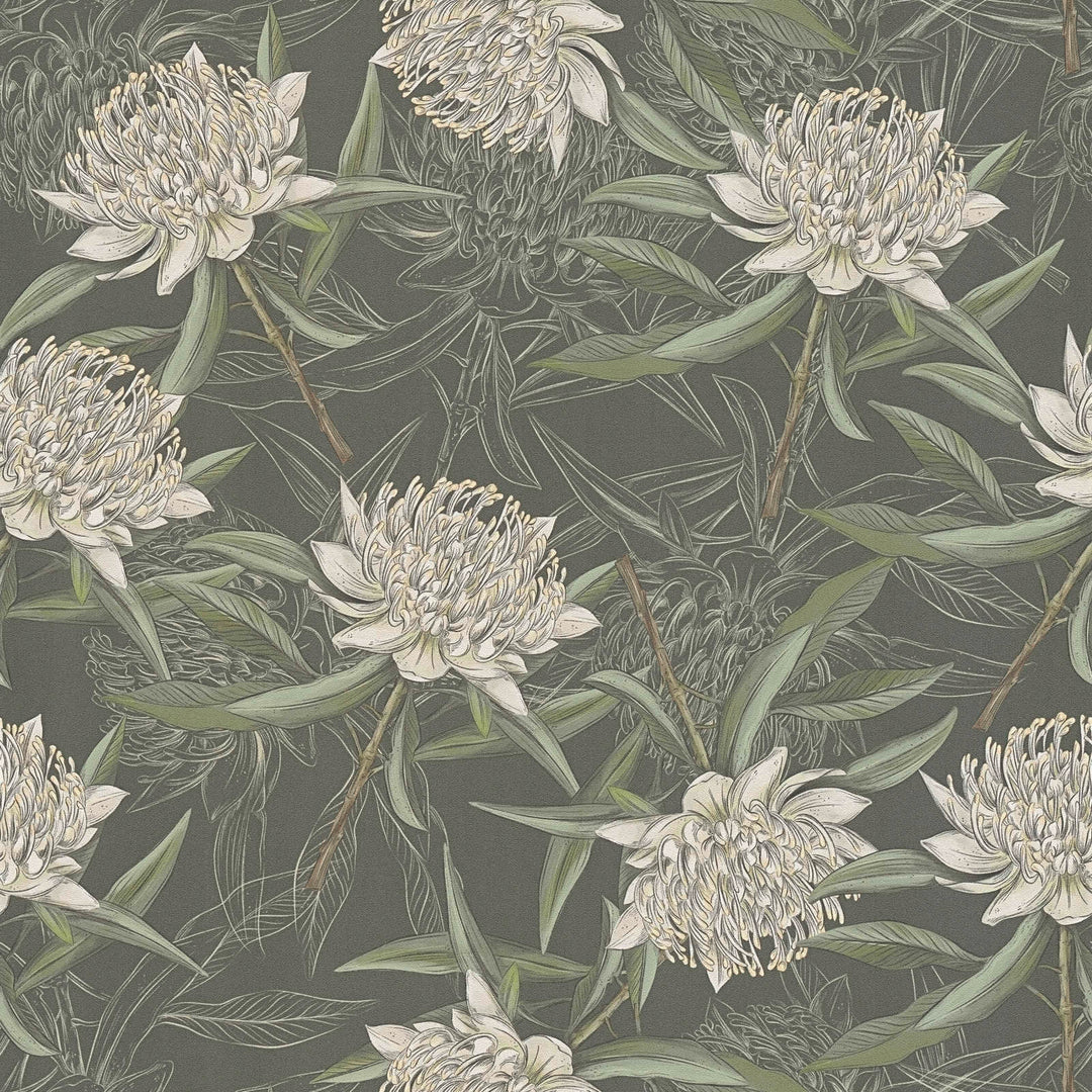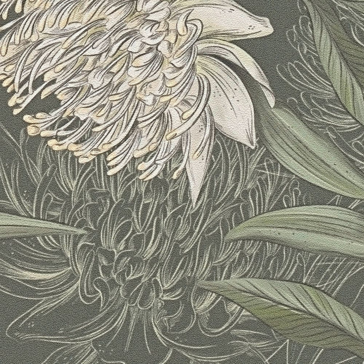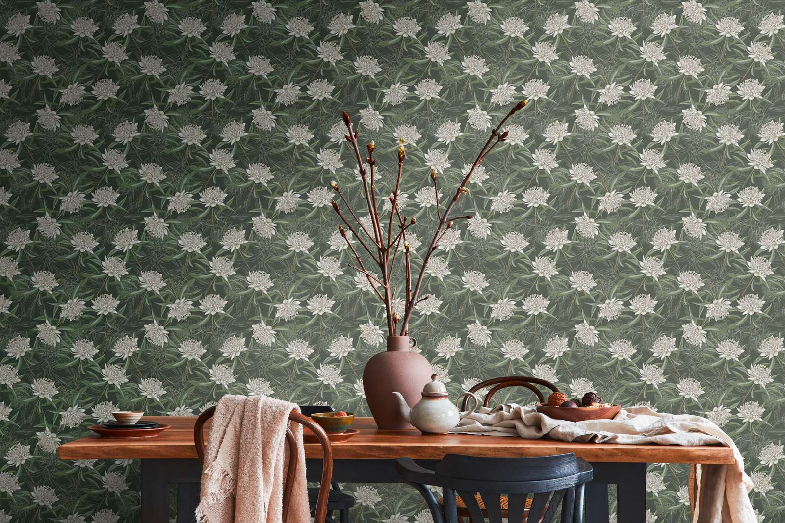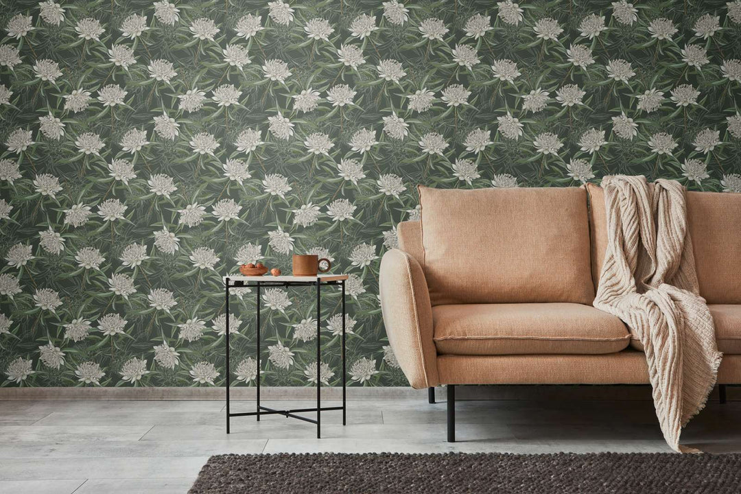 Tapetes ar ziediem un lapām: tumši zaļas, 1402121