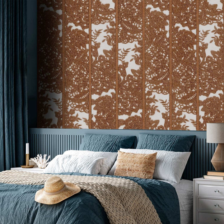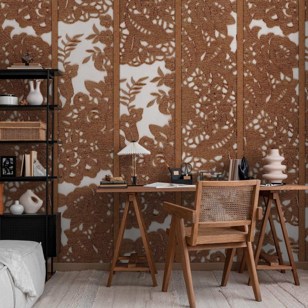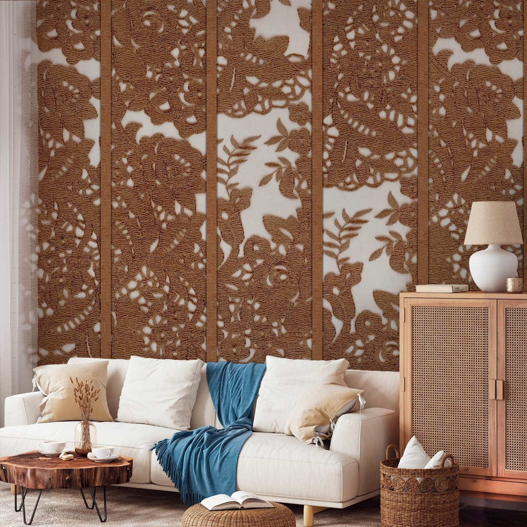 Tapetes ar ziedu ornamentu brūnos toņos, 89725