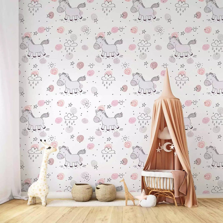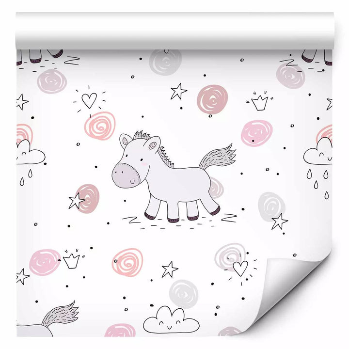 Tapetes ar zirgiem, bērnu istabai - Smieklīgs ponijs, 127230, (0,5x10m)