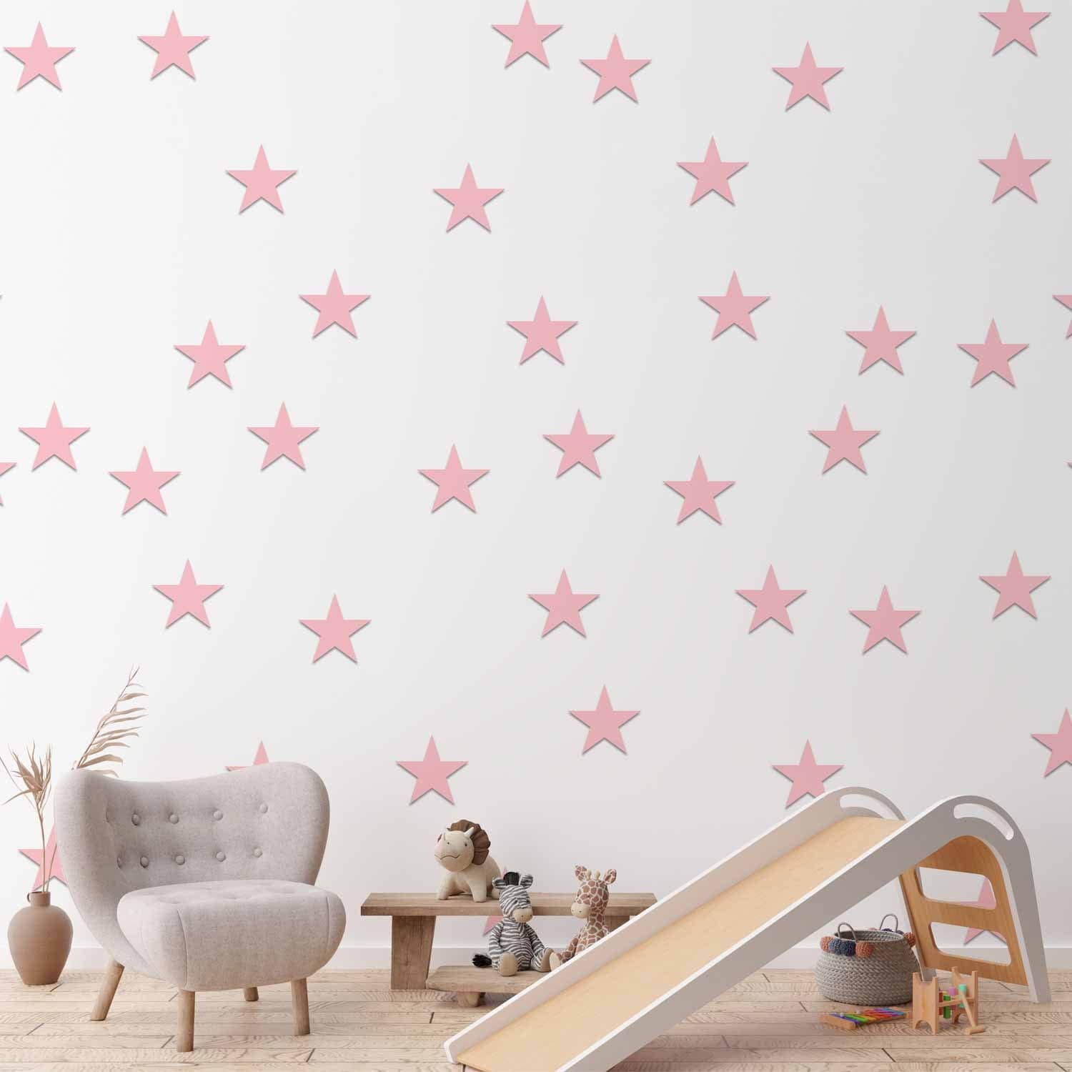 Tapetes bērnu istabai ar rozā zvaigznēm, 89647