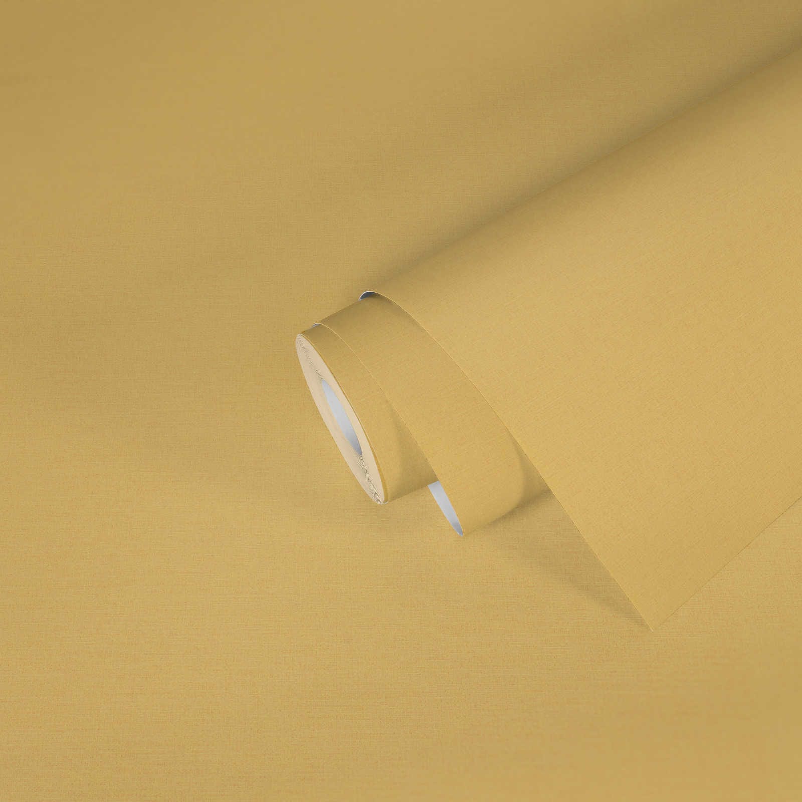 Vienkrāsainas tapetes ar lina tekstūru: dzeltenā krāsā, 1367654