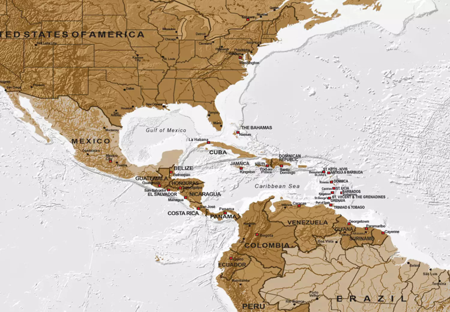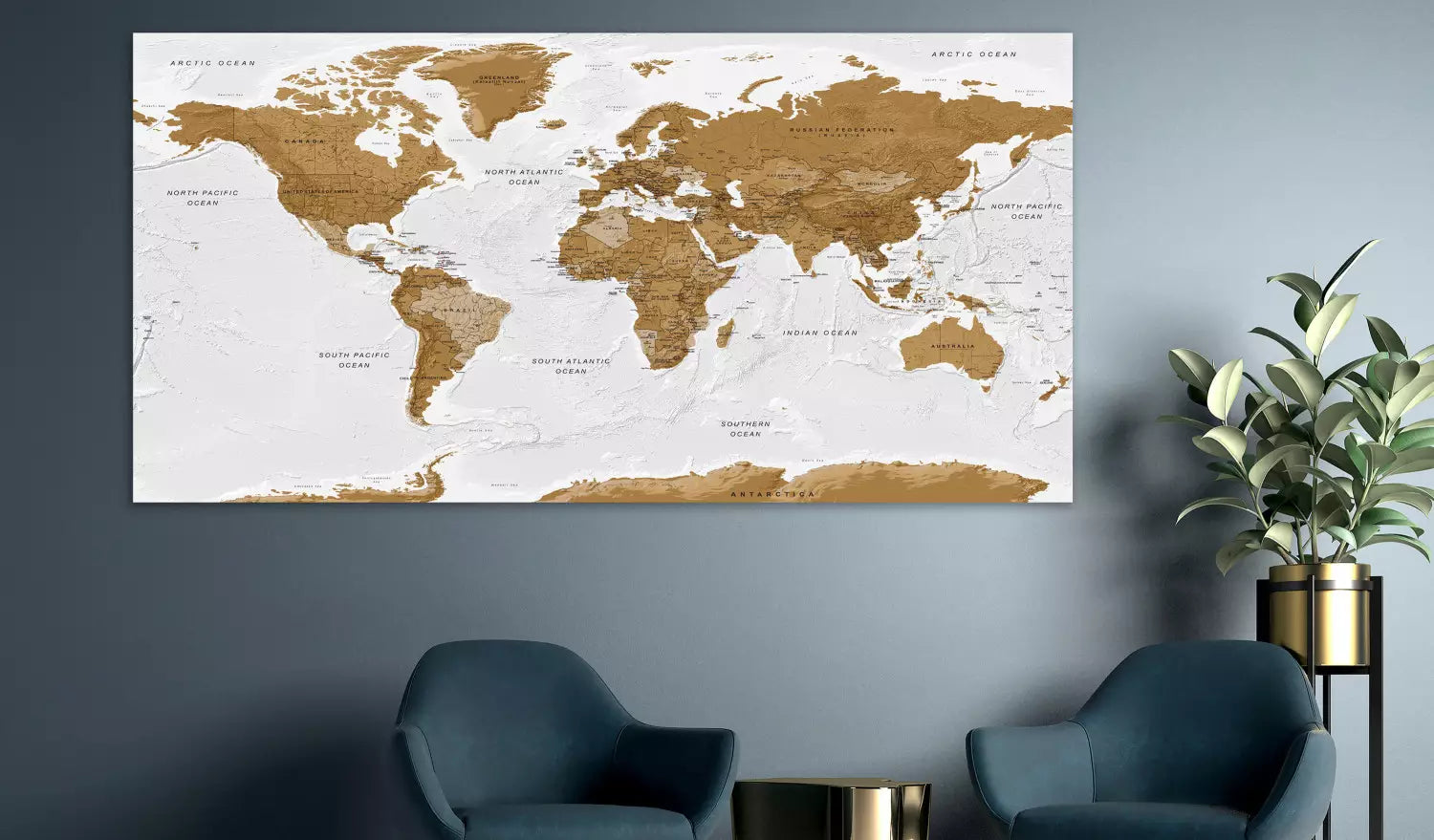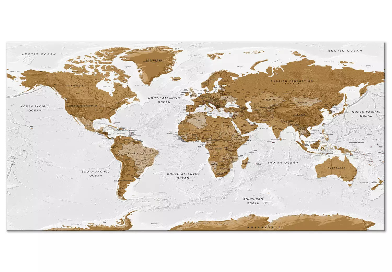 Картина большого формата - Политическая карта мира со странами на светлом фоне, 132356