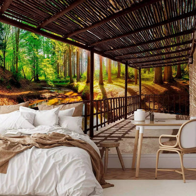 Полосатые обои в стиле кантри: бежевый - 1373152