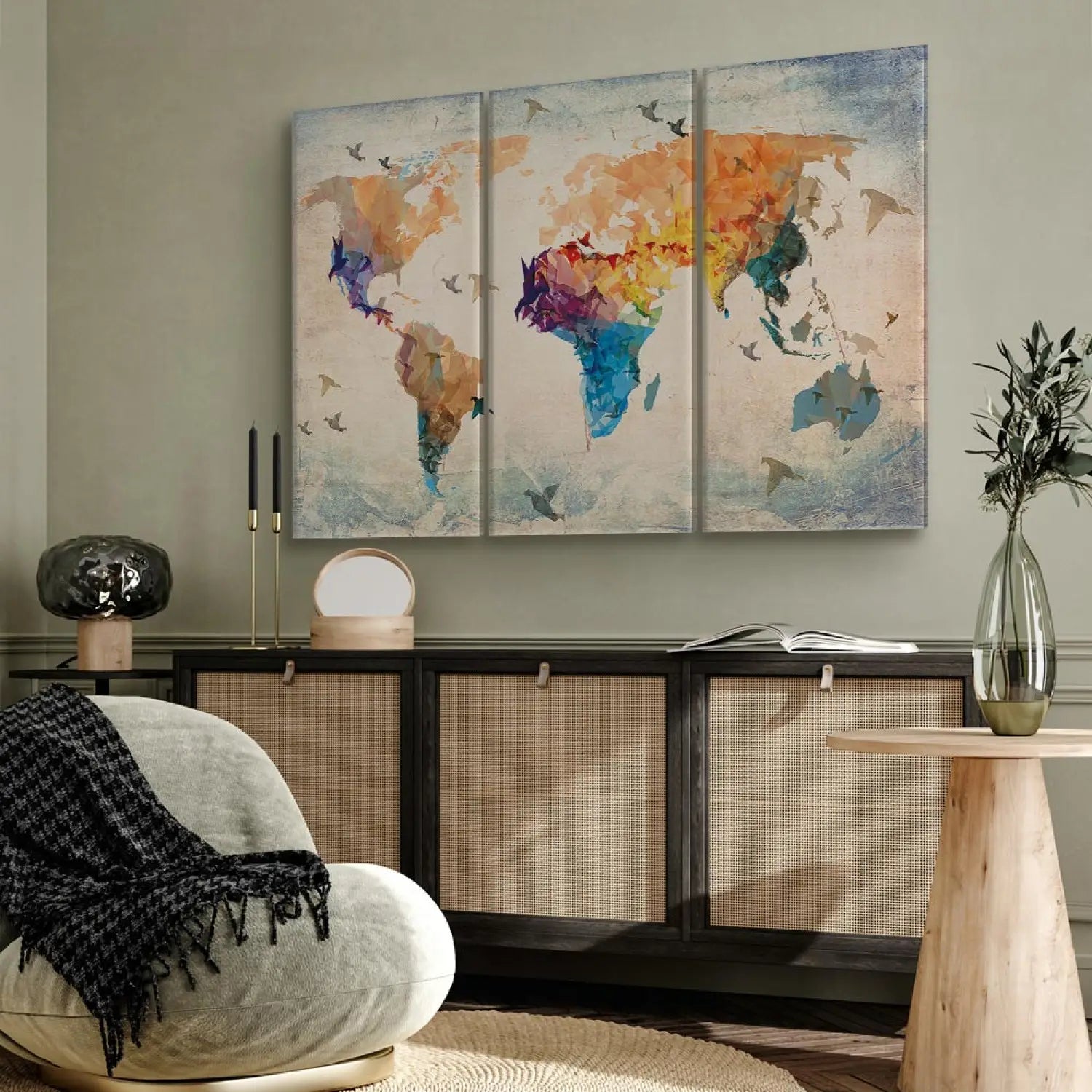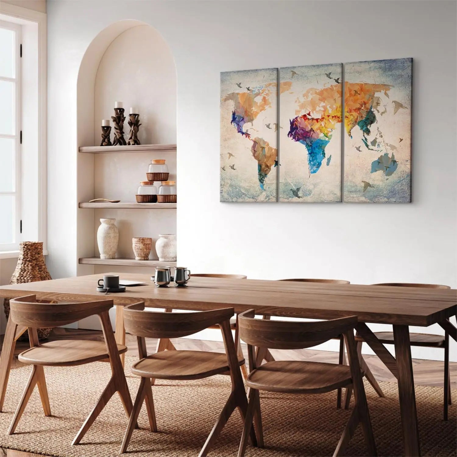 Канва с картой мира в современном стиле - Свободен как птица (триптих), 55459 (x3)