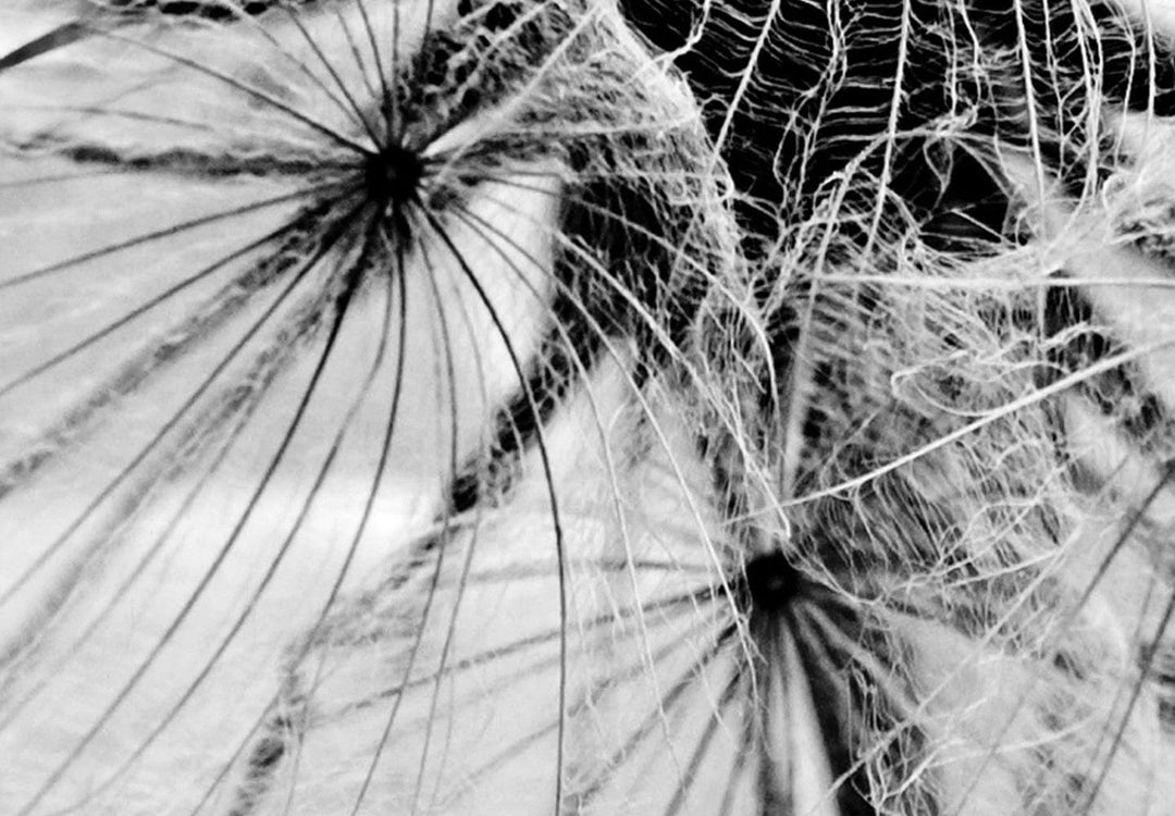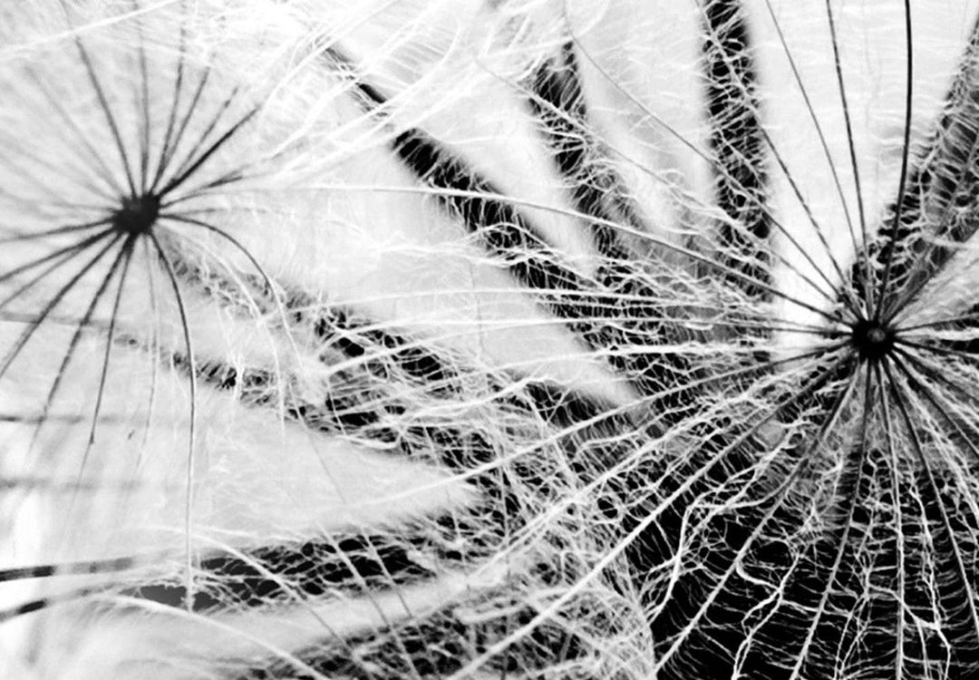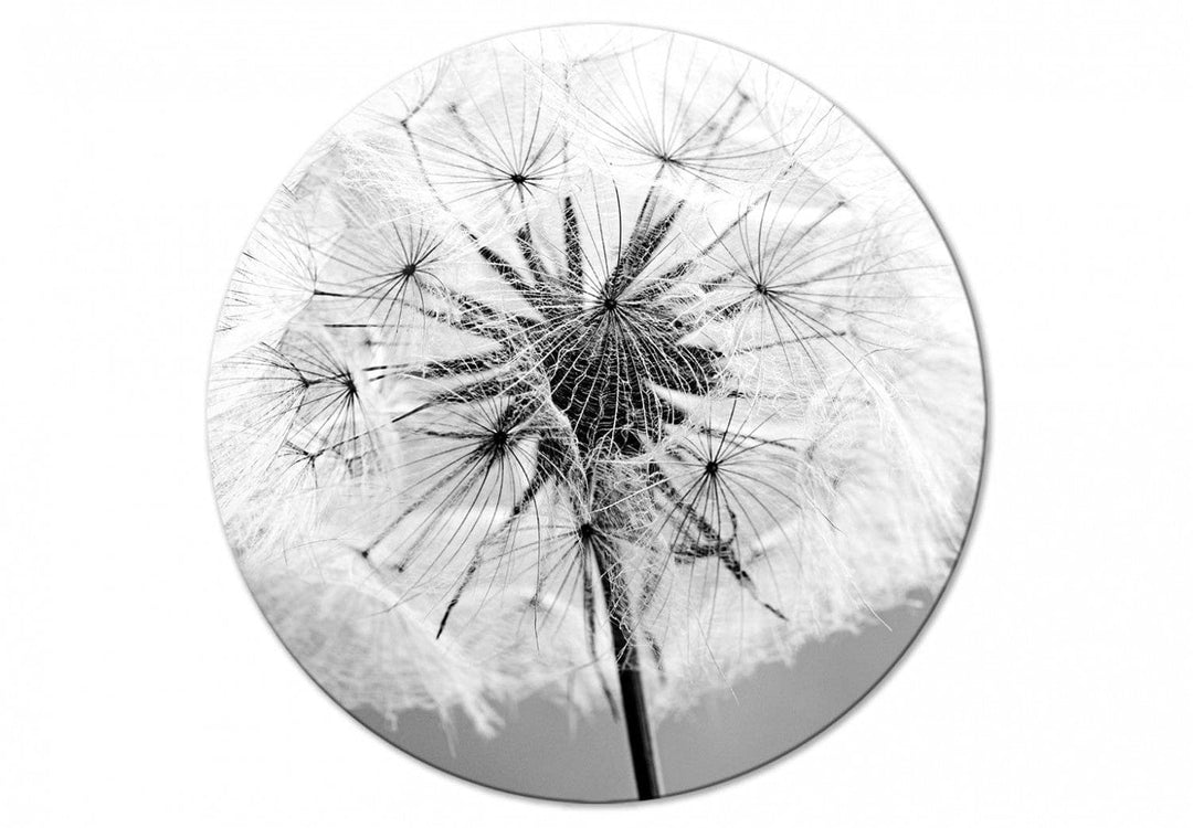 Круглая картина (Deluxe) - Черно-белый крупный план одуванчика на ветру, 148606