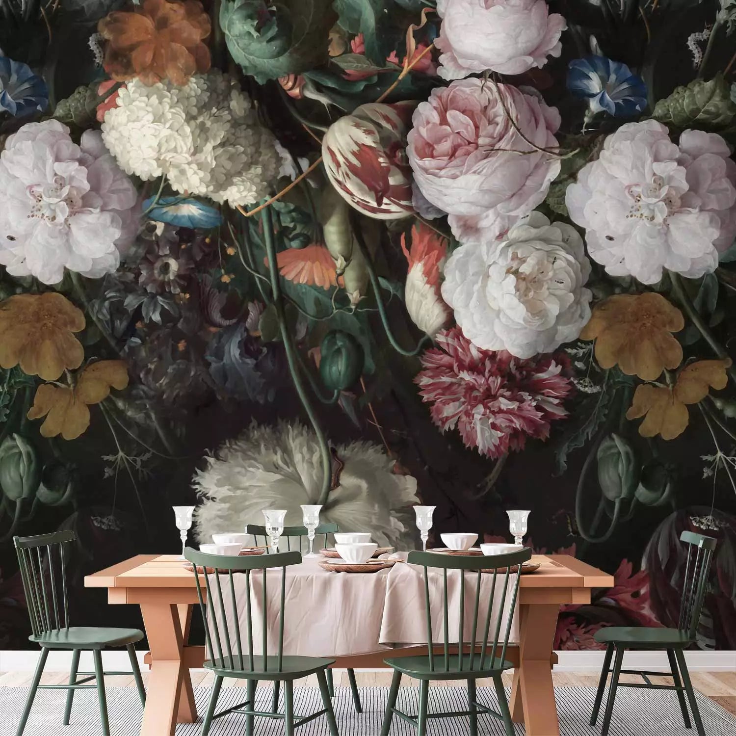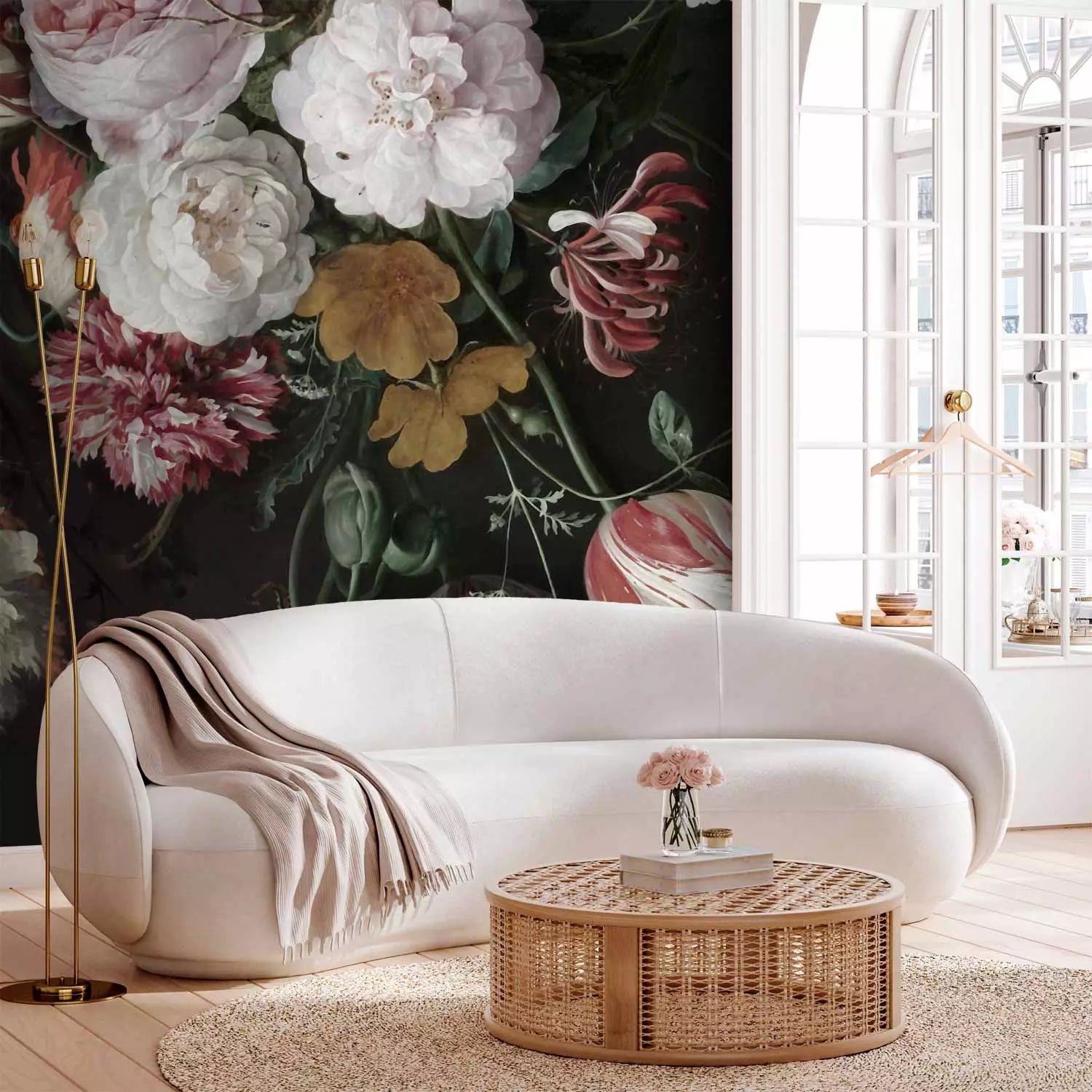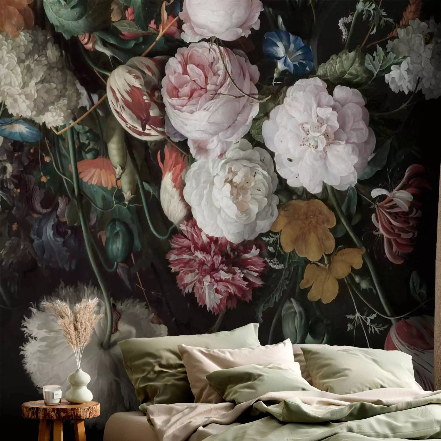 Фотообои - Винтажные цветы на черном фоне, 135748
