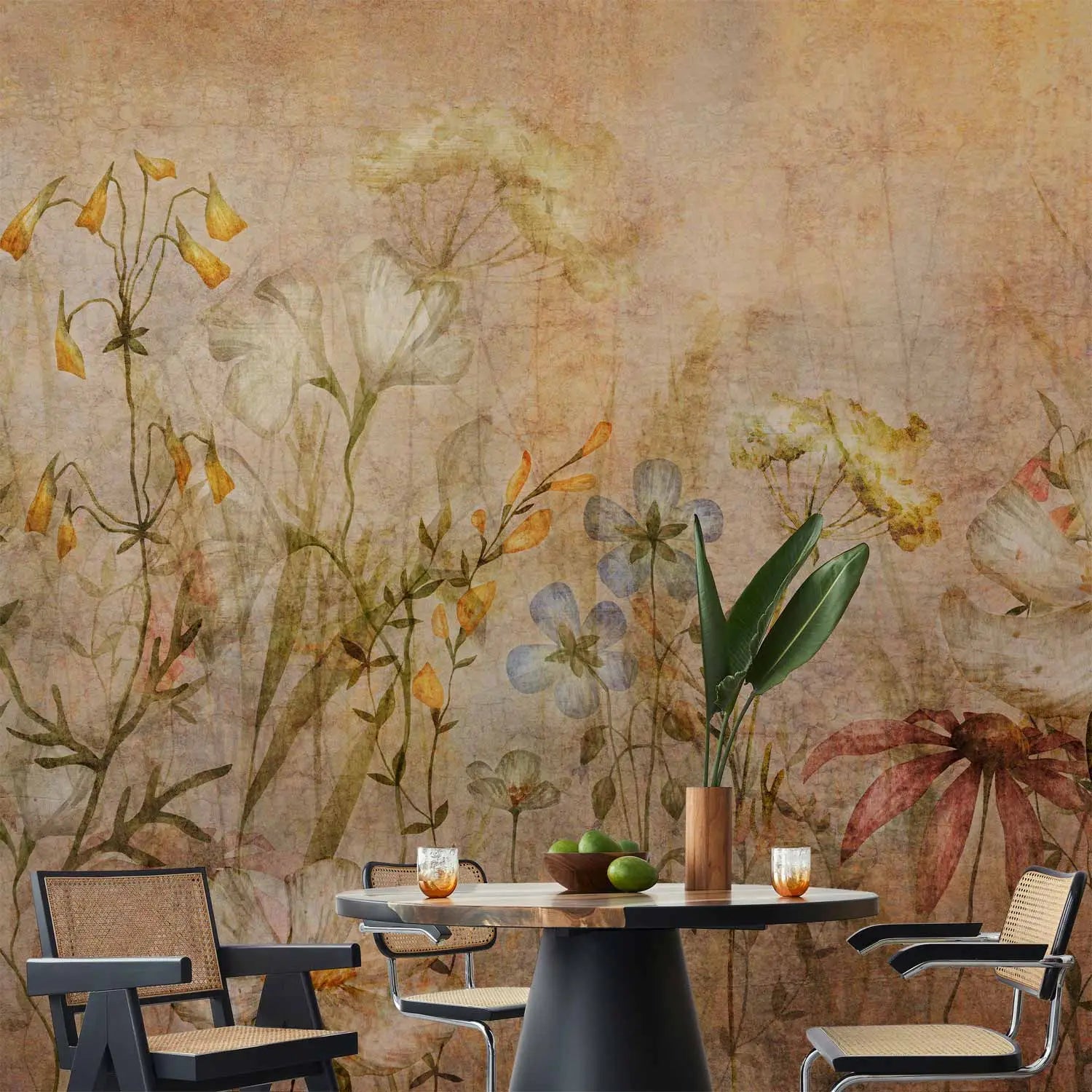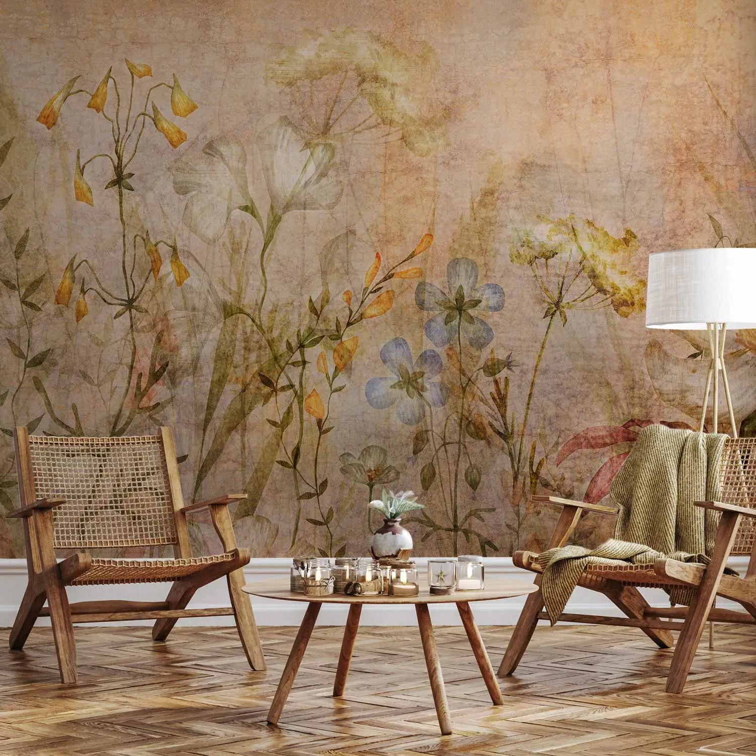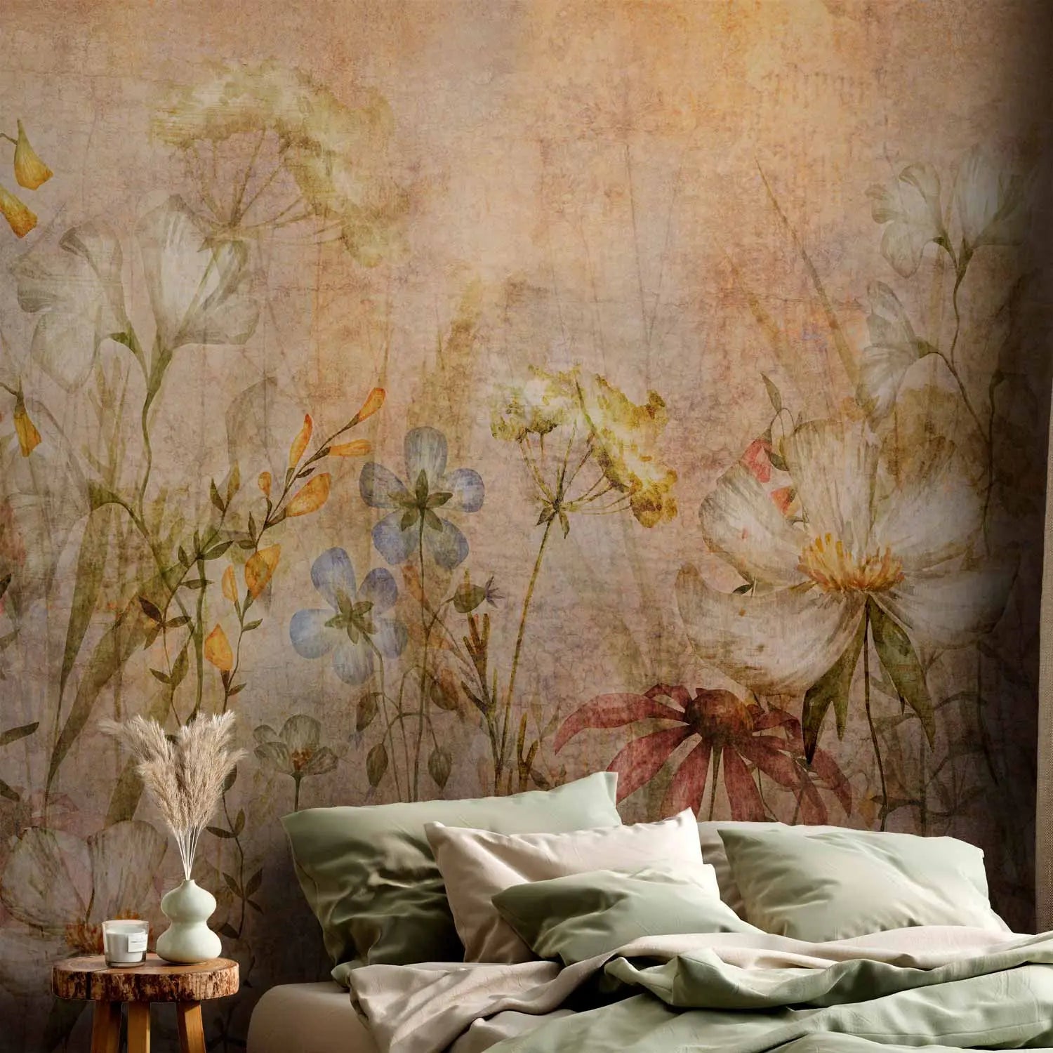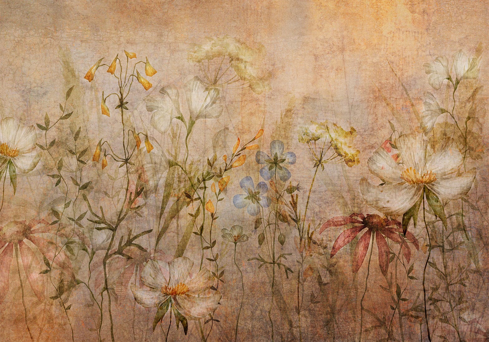 Фотообои - Нежные цветы | великолепный луг с полевыми цветами в оттенках коричневого, 160899