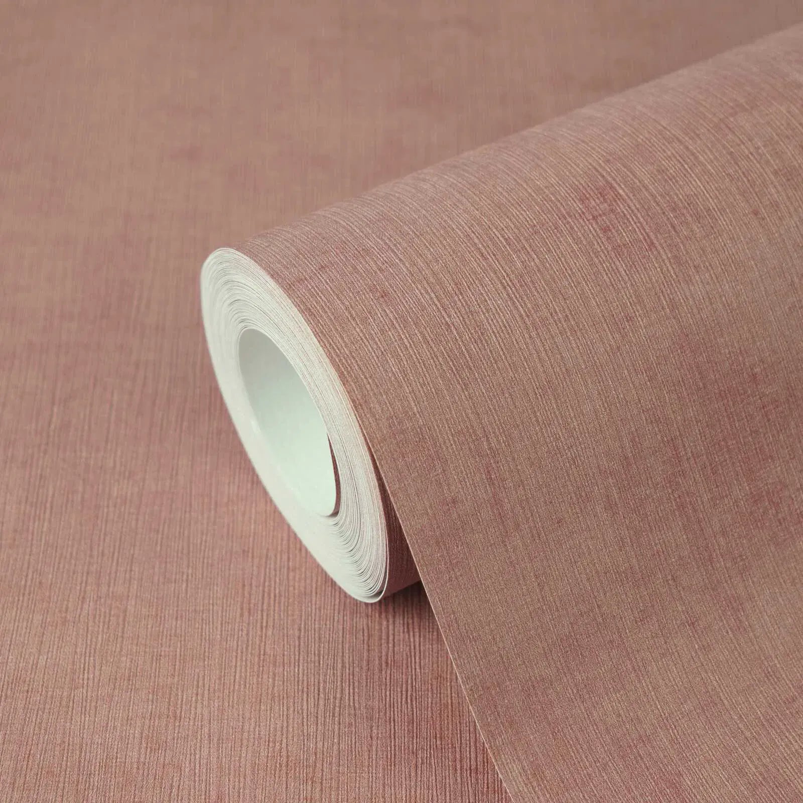 Мотив этих обоев изображает тонкую, деликатную структуру из нерегулярных вертикальных линий, которые выглядят как нарисованные от руки. Основной цвет — теплый матовый розовый оттенок с нежными нюансами темно-розового и небольшим оттенком терракоты. Деликатный узор придает поверхности текстуру, напоминающую льняную ткань. Цветовая гамма создает успокаивающий и нежный эффект, создавая уютную и привлекательную атмосферу. Простой дизайн современный и сдержанный, особенно подходит для интерьеров в стиле минимализм или скандинавском стиле, где требуется спокойный, изысканный фон.