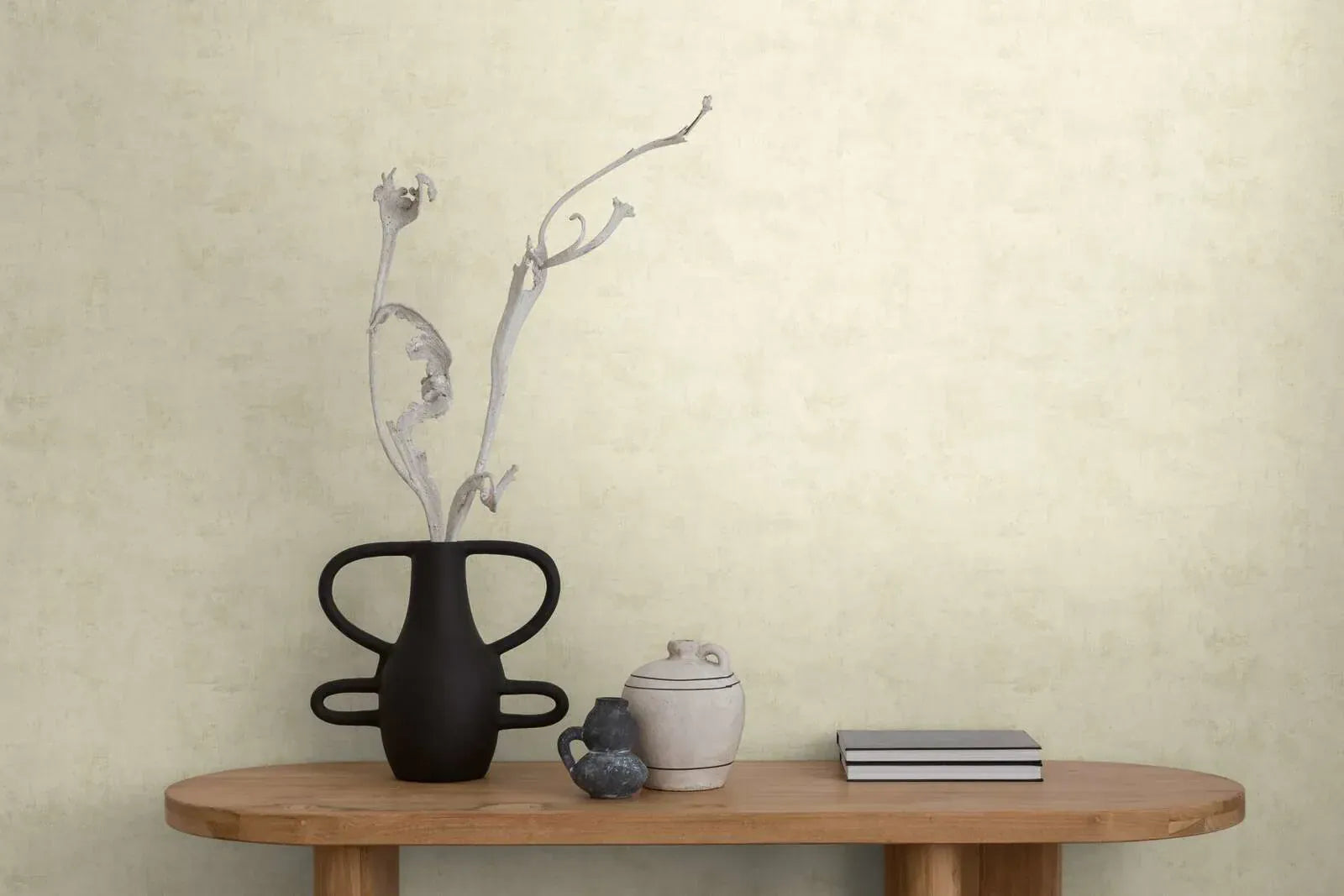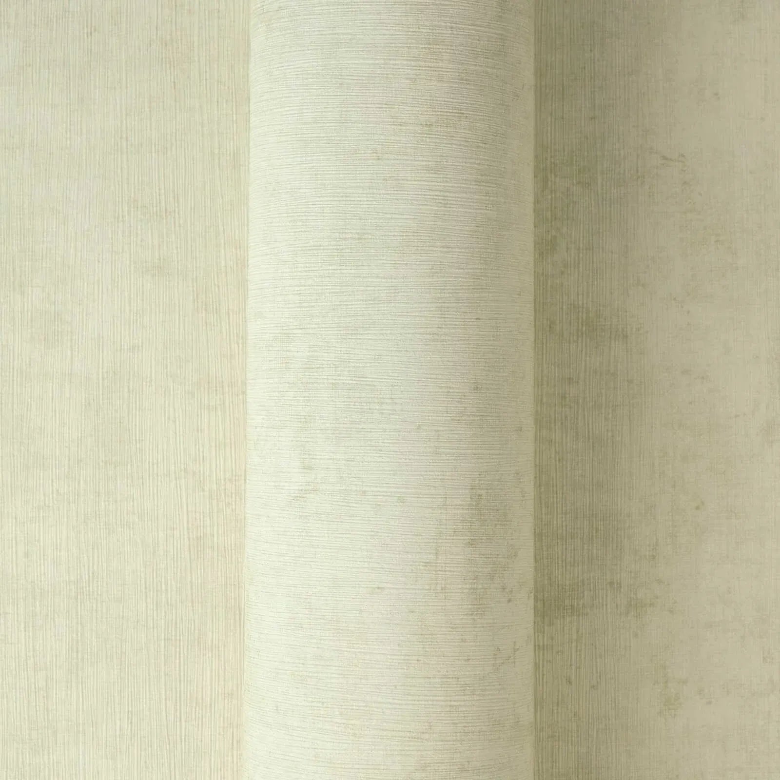 Мотив обоев имеет тонкую, ненавязчивую текстуру в нежных песочных тонах. Тонкие вертикальные линии расположены равномерно и плотно друг к другу по всей поверхности, создавая текстуру, похожую на ткань, почти как у ткани. Поверхность выглядит слегка пятнистой, создавая нежный, естественный характер – как прикосновение патины или тонкие волокна льняной ткани. Цветовая гамма варьируется от слегка мутного кремового до нежного песочного цвета, создавая спокойную, гармоничную картину. Эффект сдержанный, теплый и привлекательный. Узор придает помещению вечную элегантность и создает приятную, уютную атмосферу, которая подходит как для современных, так и для классических помещений.
