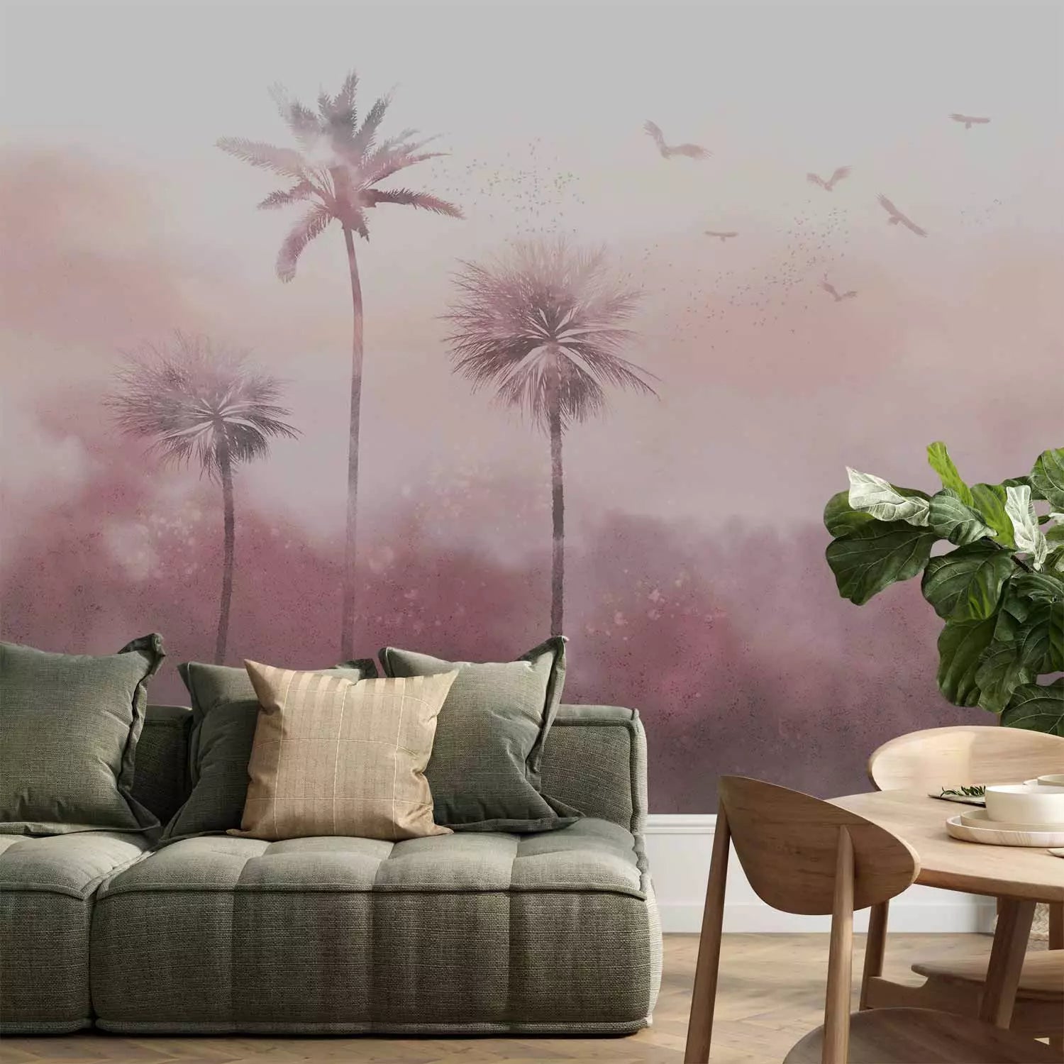 Фотообои с пальмами - Тропический бриз - розовые тона, 138742
